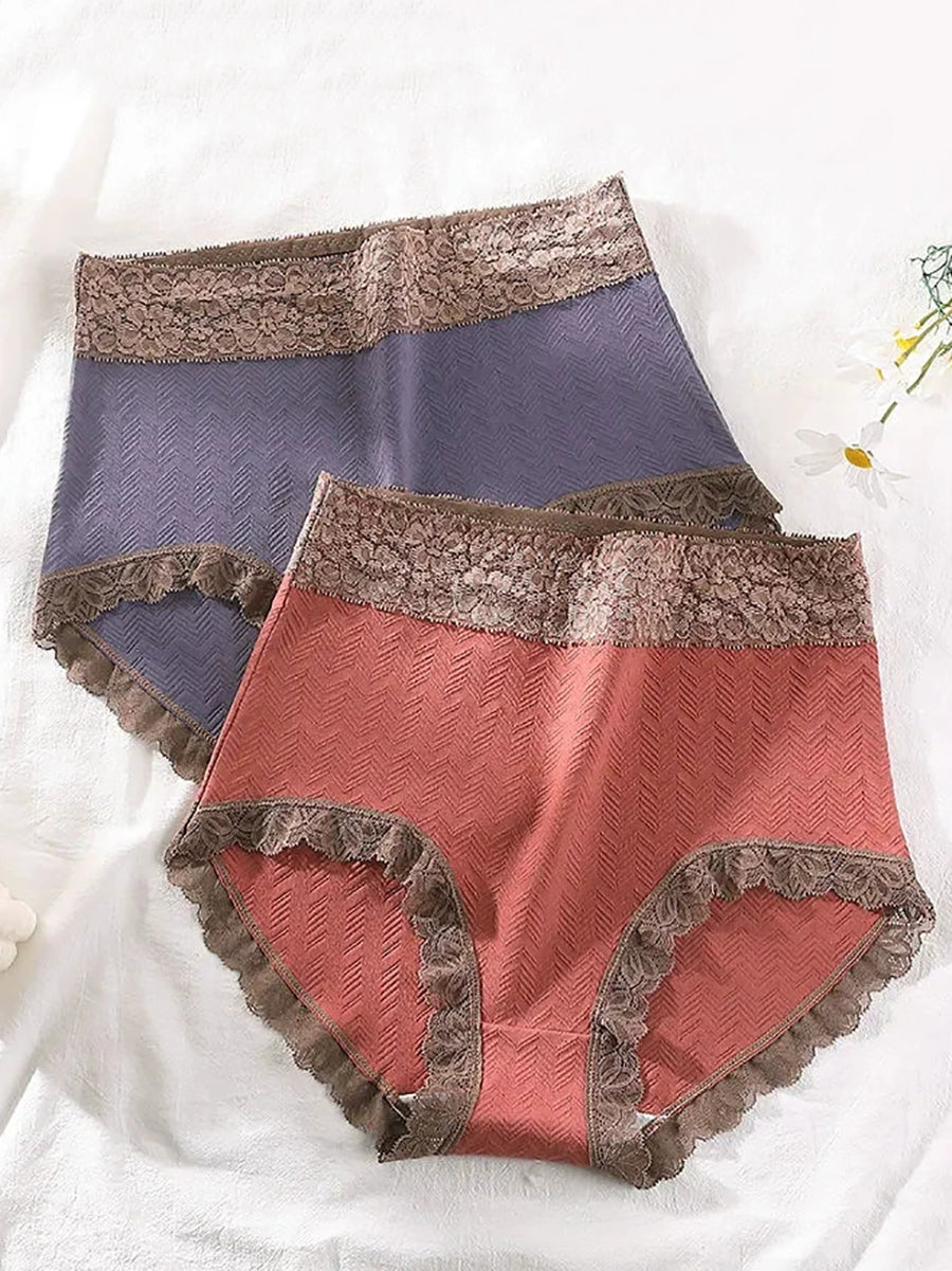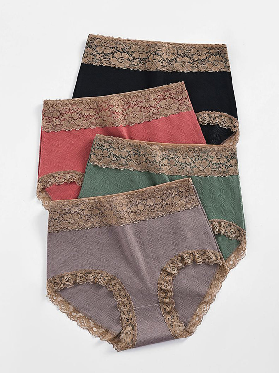 5 Pieces Women Artsy Lace Spliced High Waist Underwear