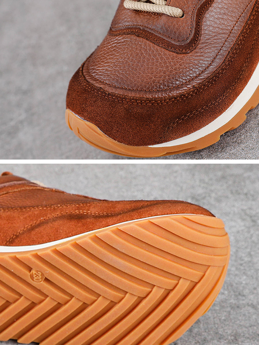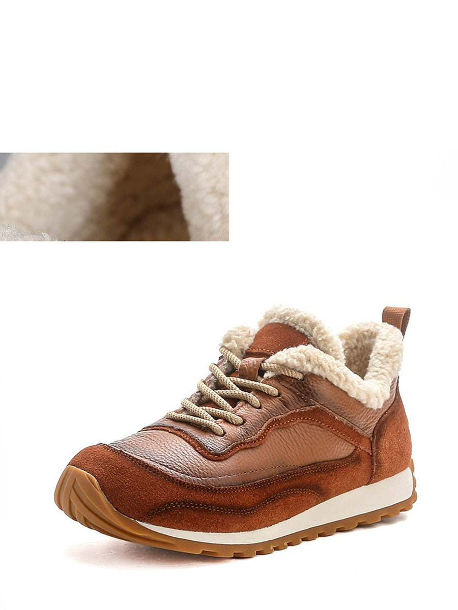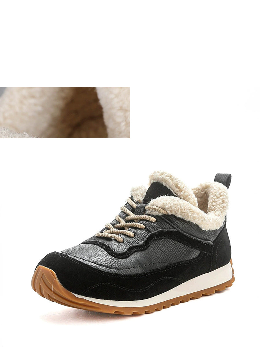 Women Winter Genuine Leather Spliced Platform Shoes