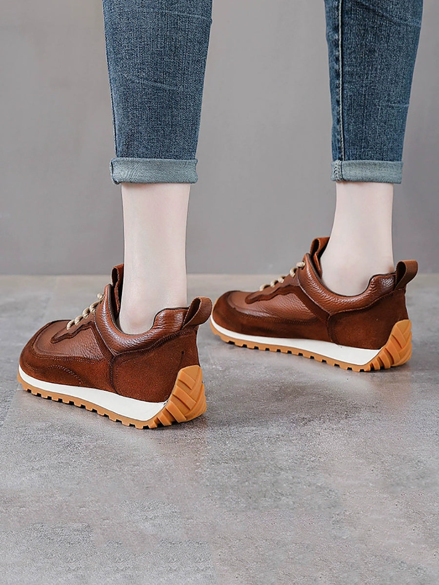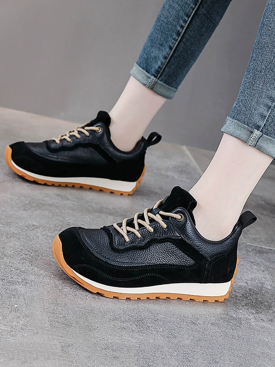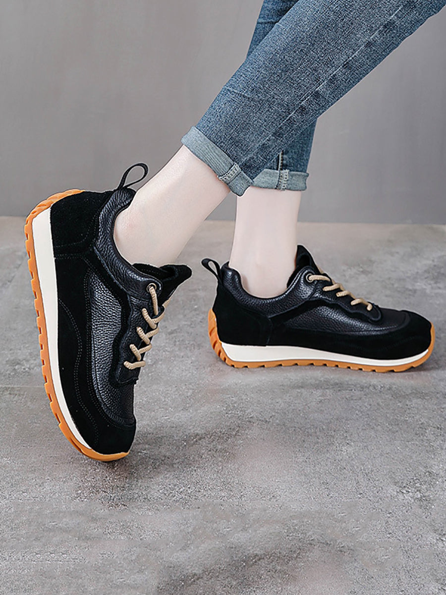 Women Winter Genuine Leather Spliced Platform Shoes