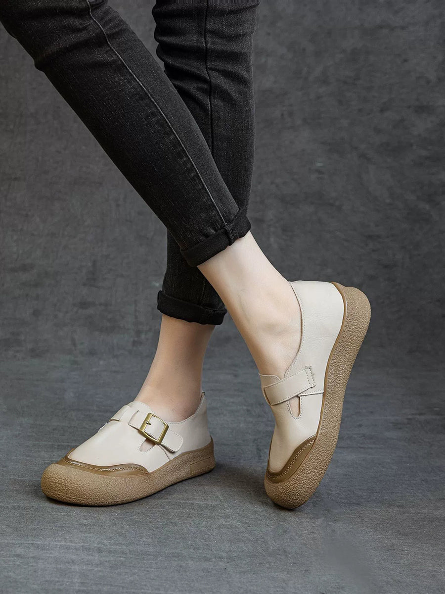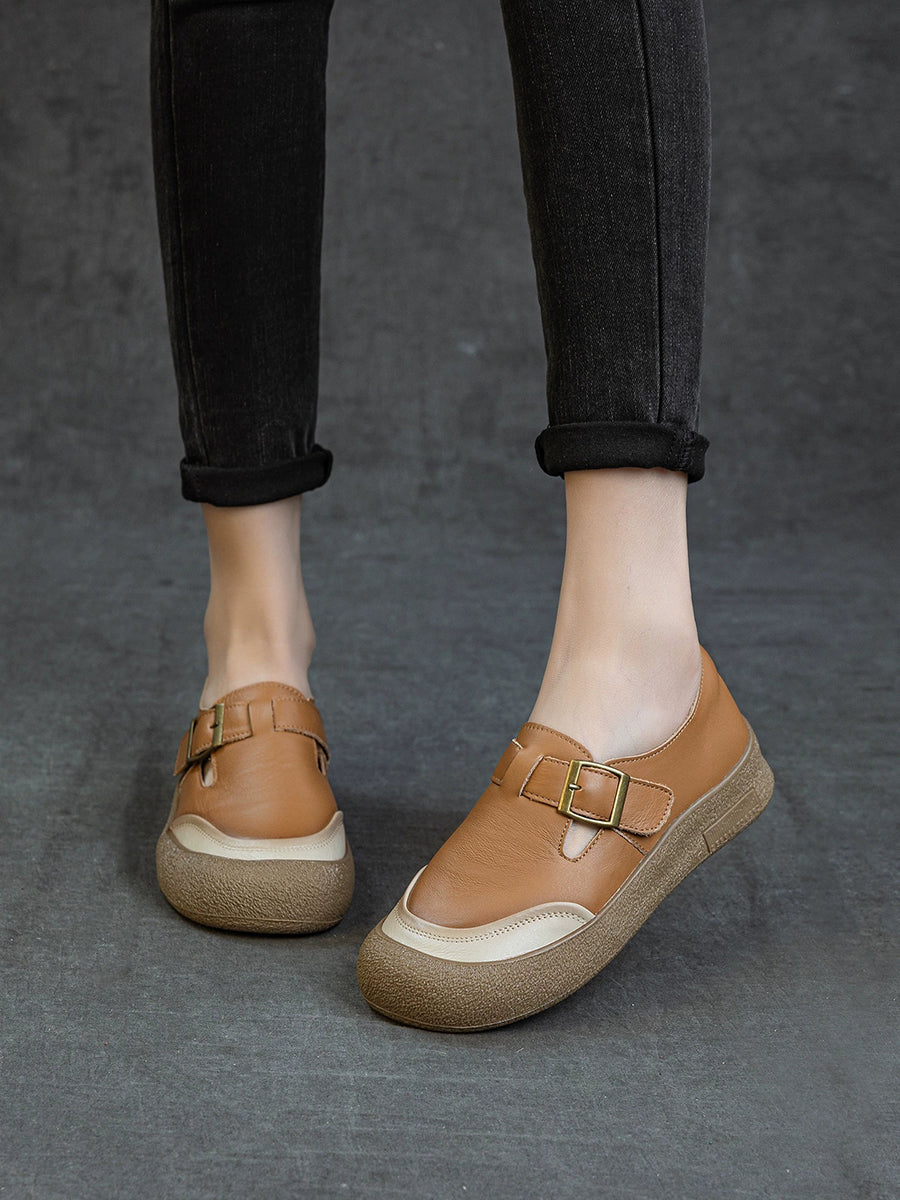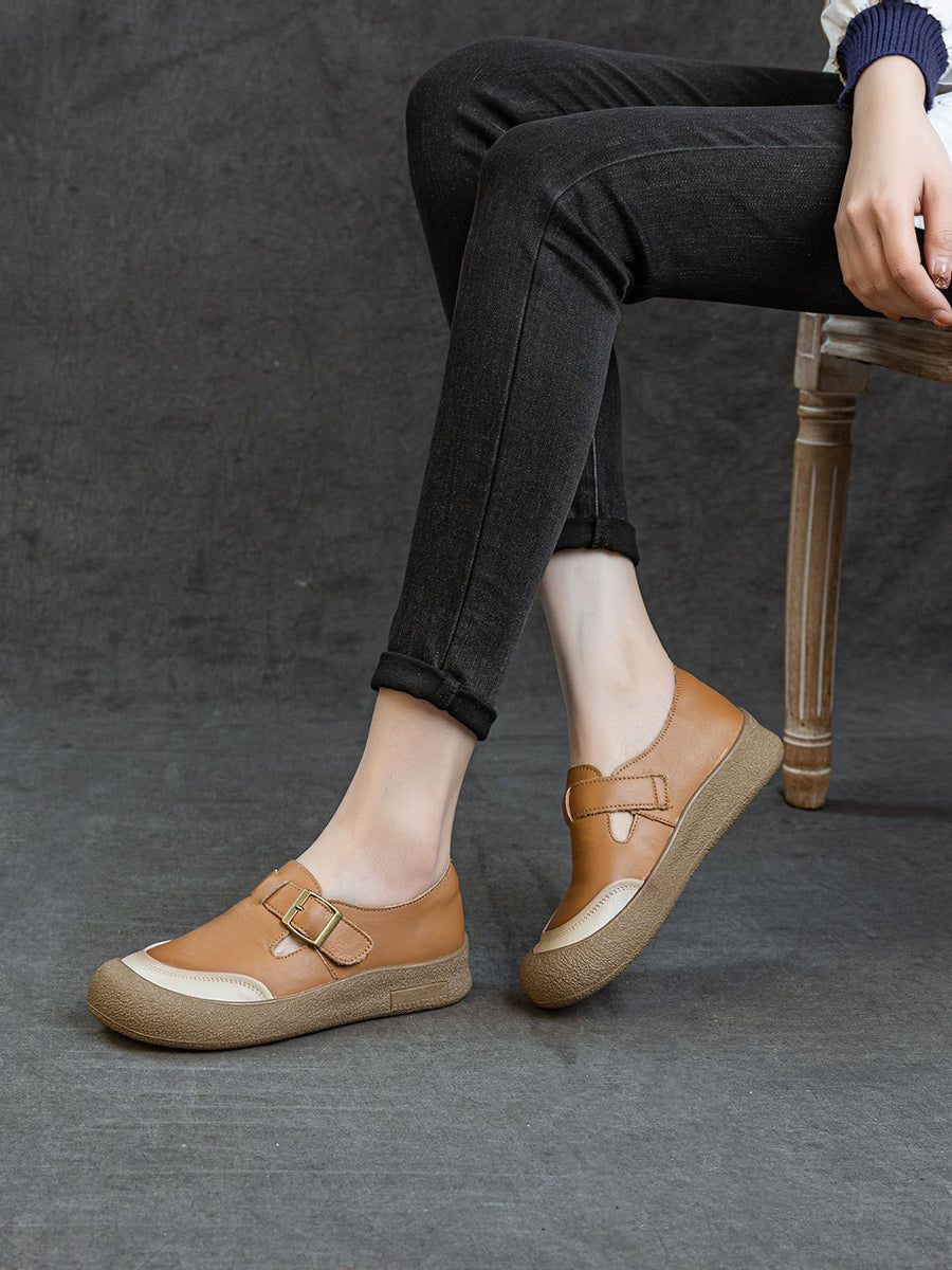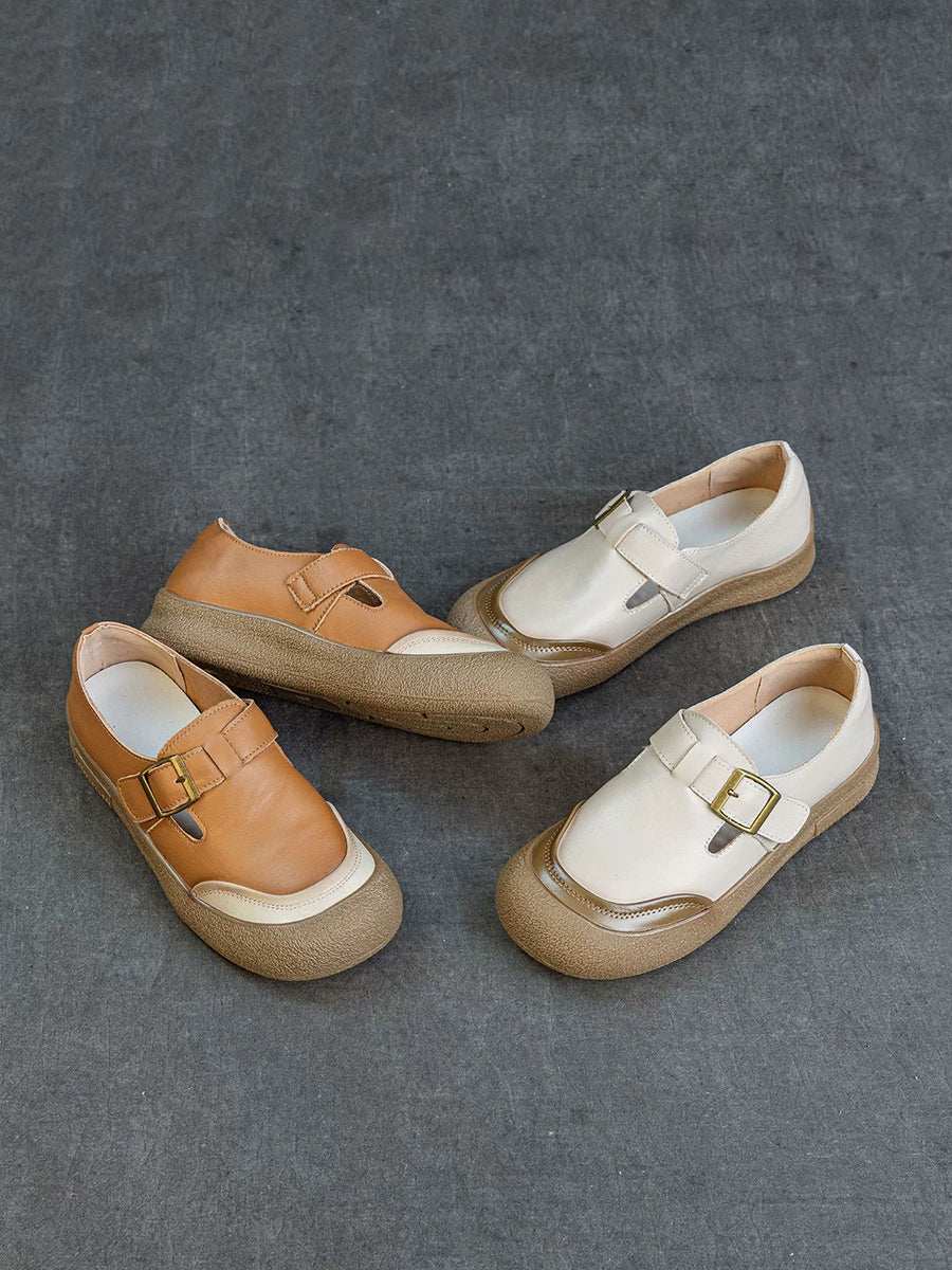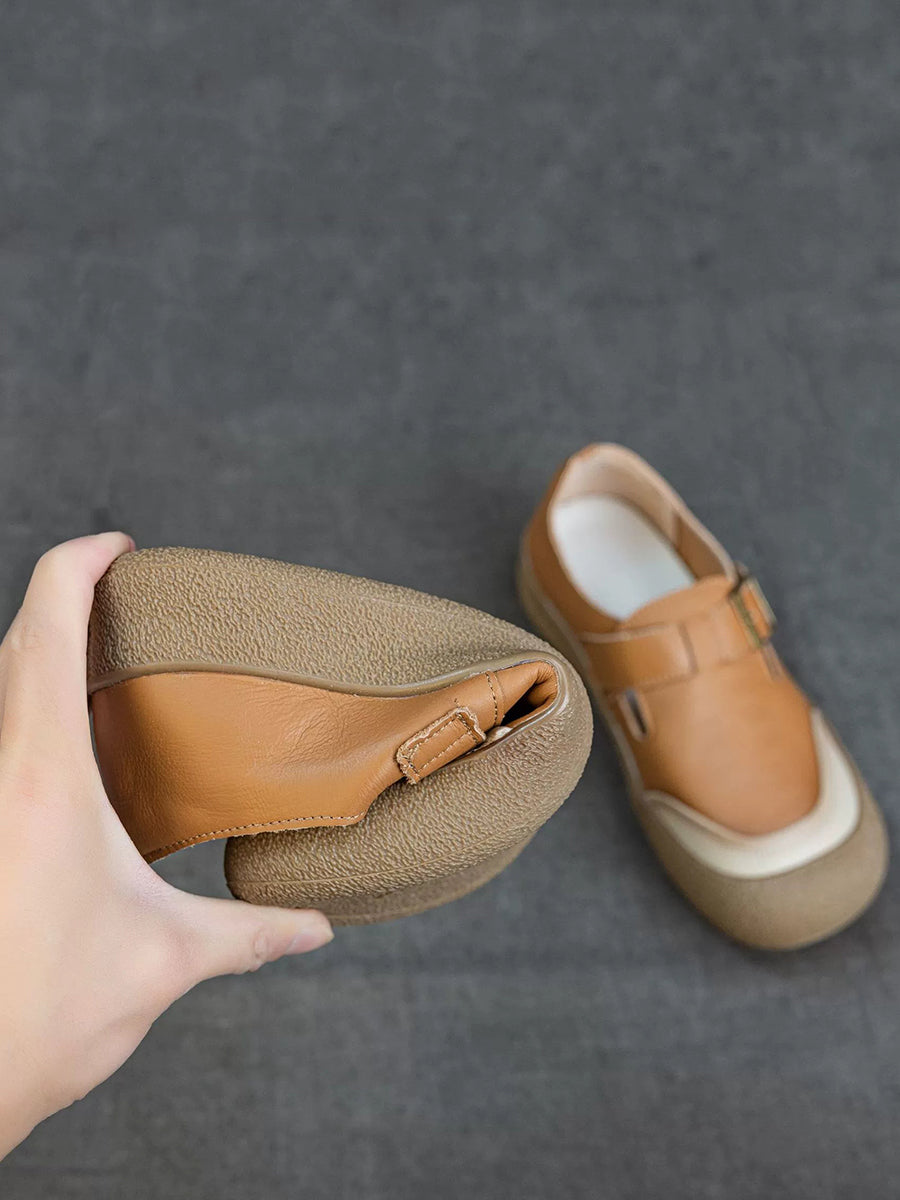 Women Spring Colorblock Genuine Leather Flat Shoes