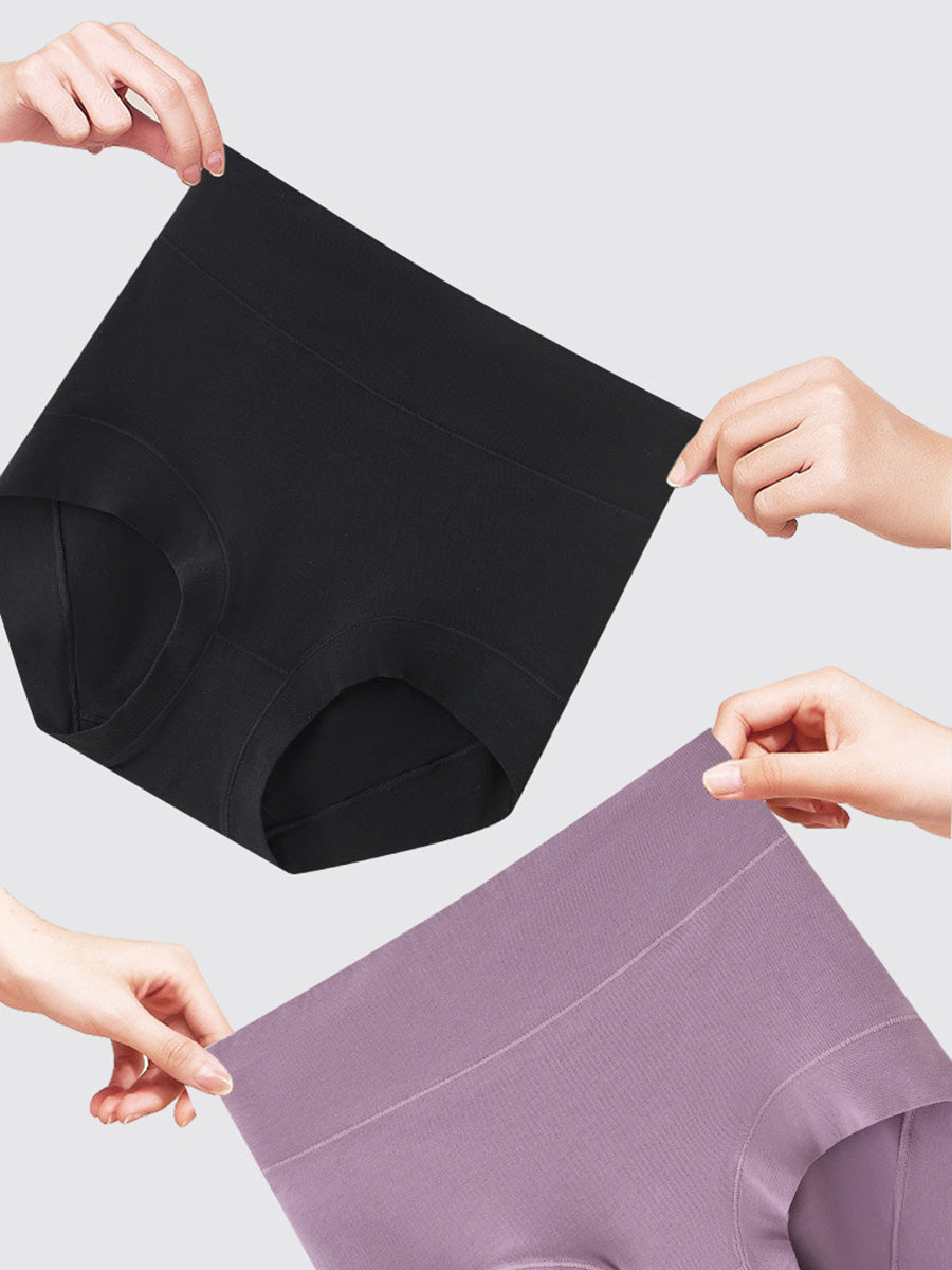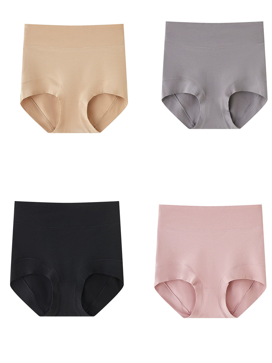 4 Pieces Women Artsy Pure Color High Waist Underwear