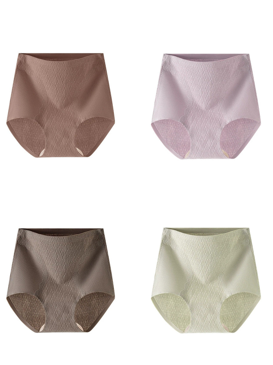 4 Pieces Women Casual Pure Color High Waist Underwear