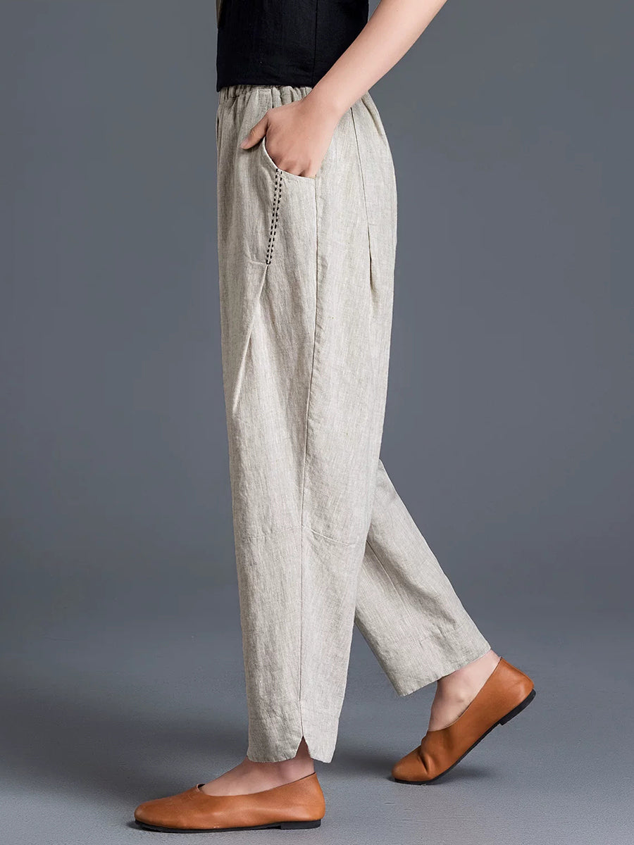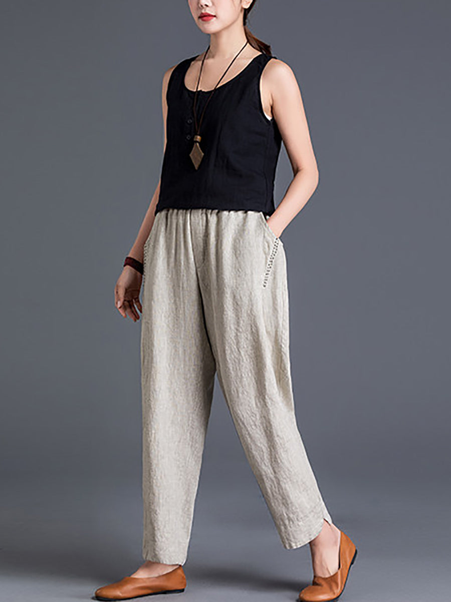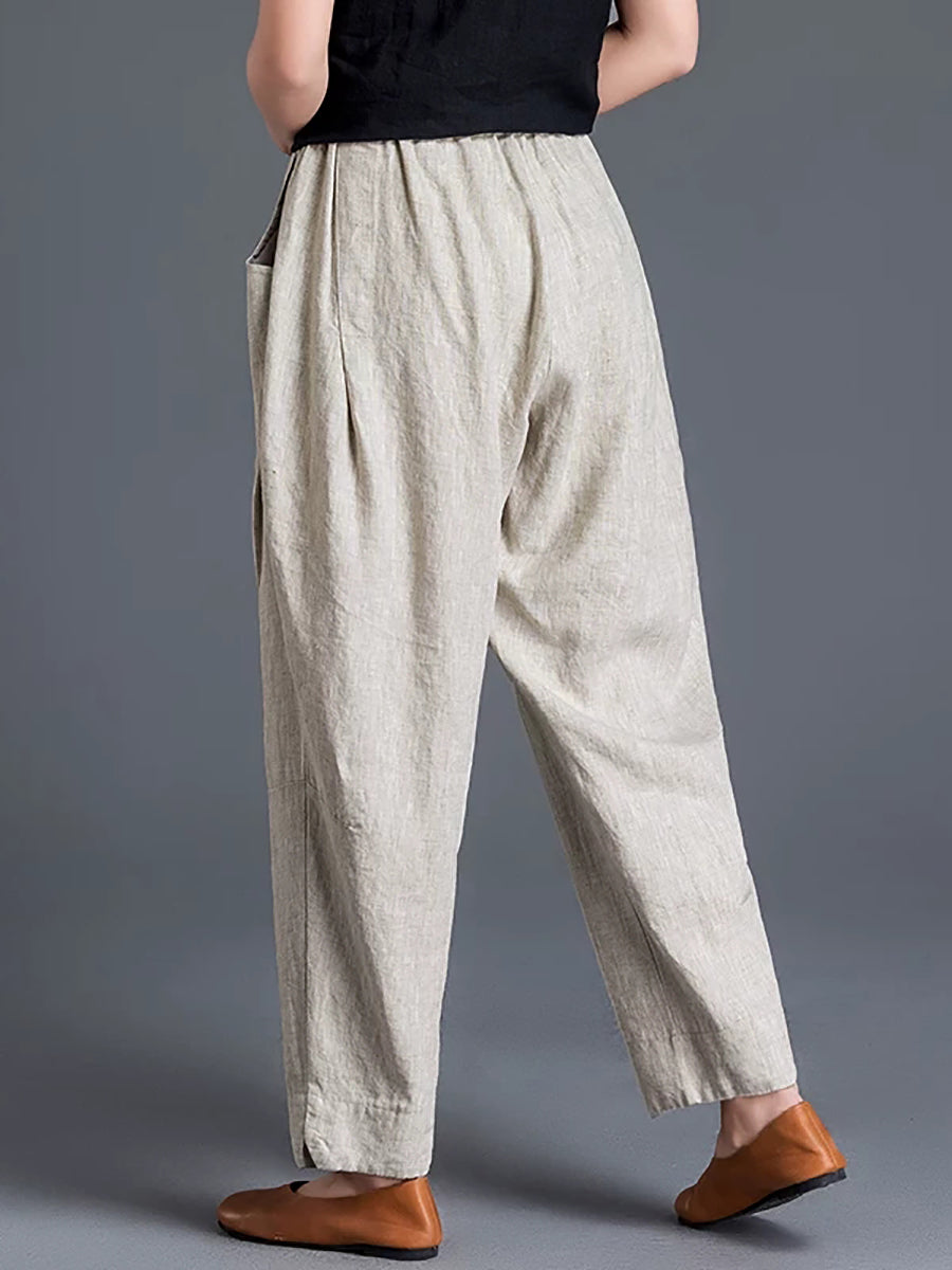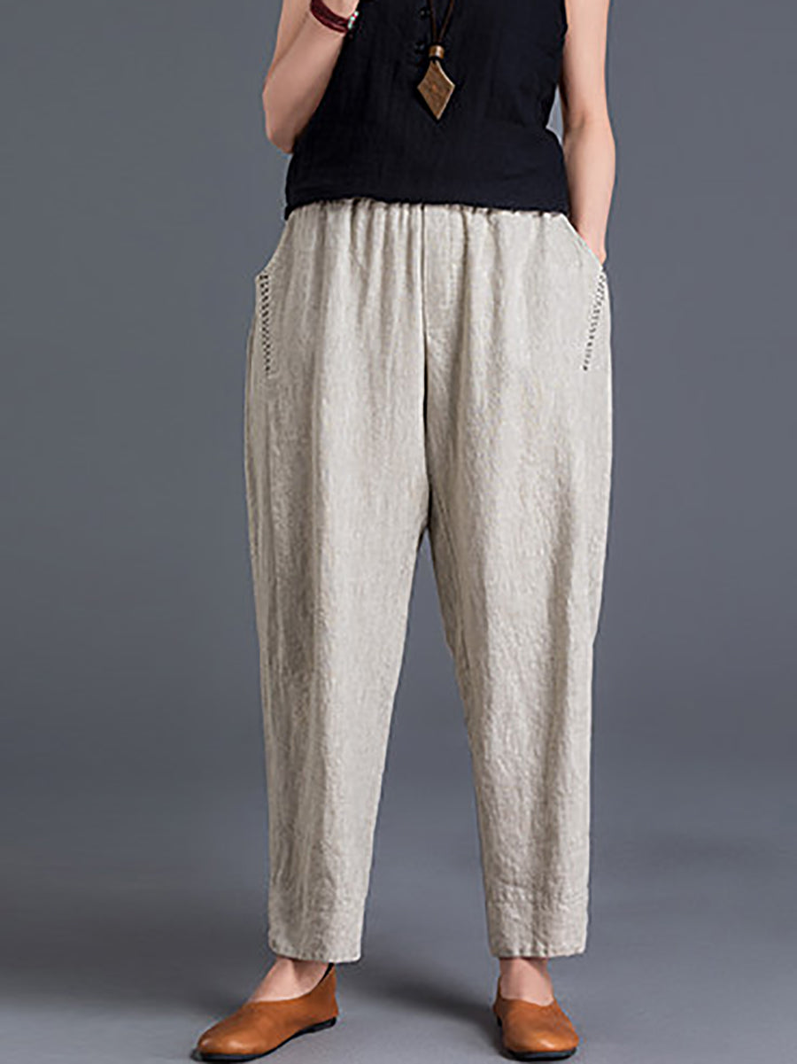 Women Spring Pure Color Cotton Linen Harem Pants