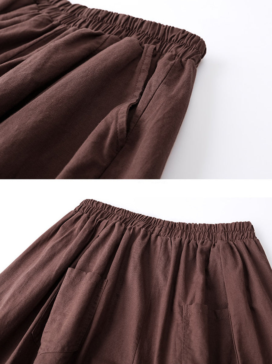 Women Summer Pure Color Cotton Linen Bloomers