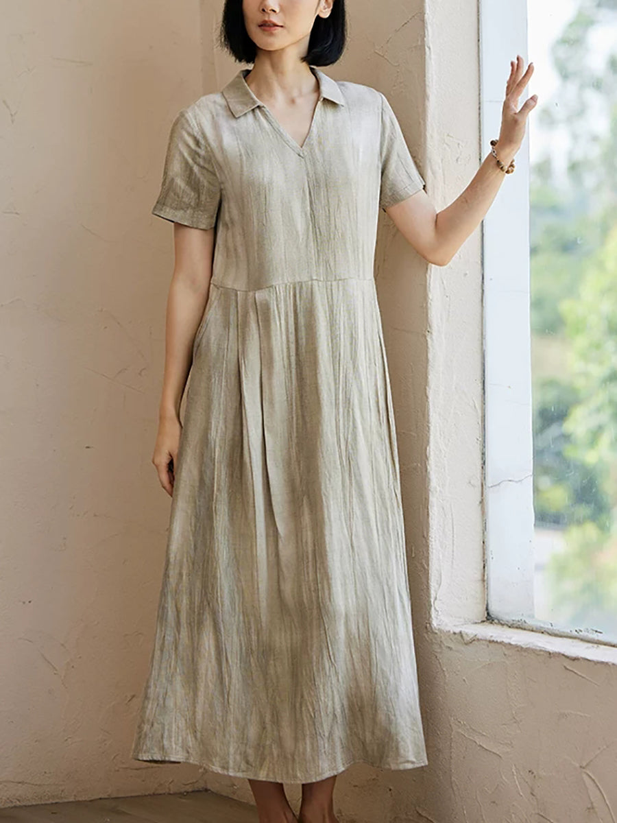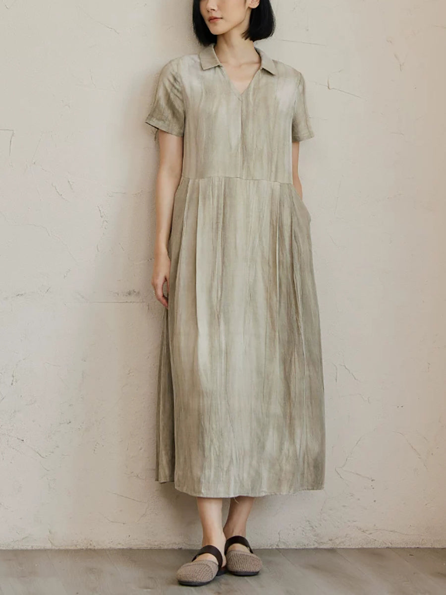 Women Summer Artsy Turn-down Collar Dress