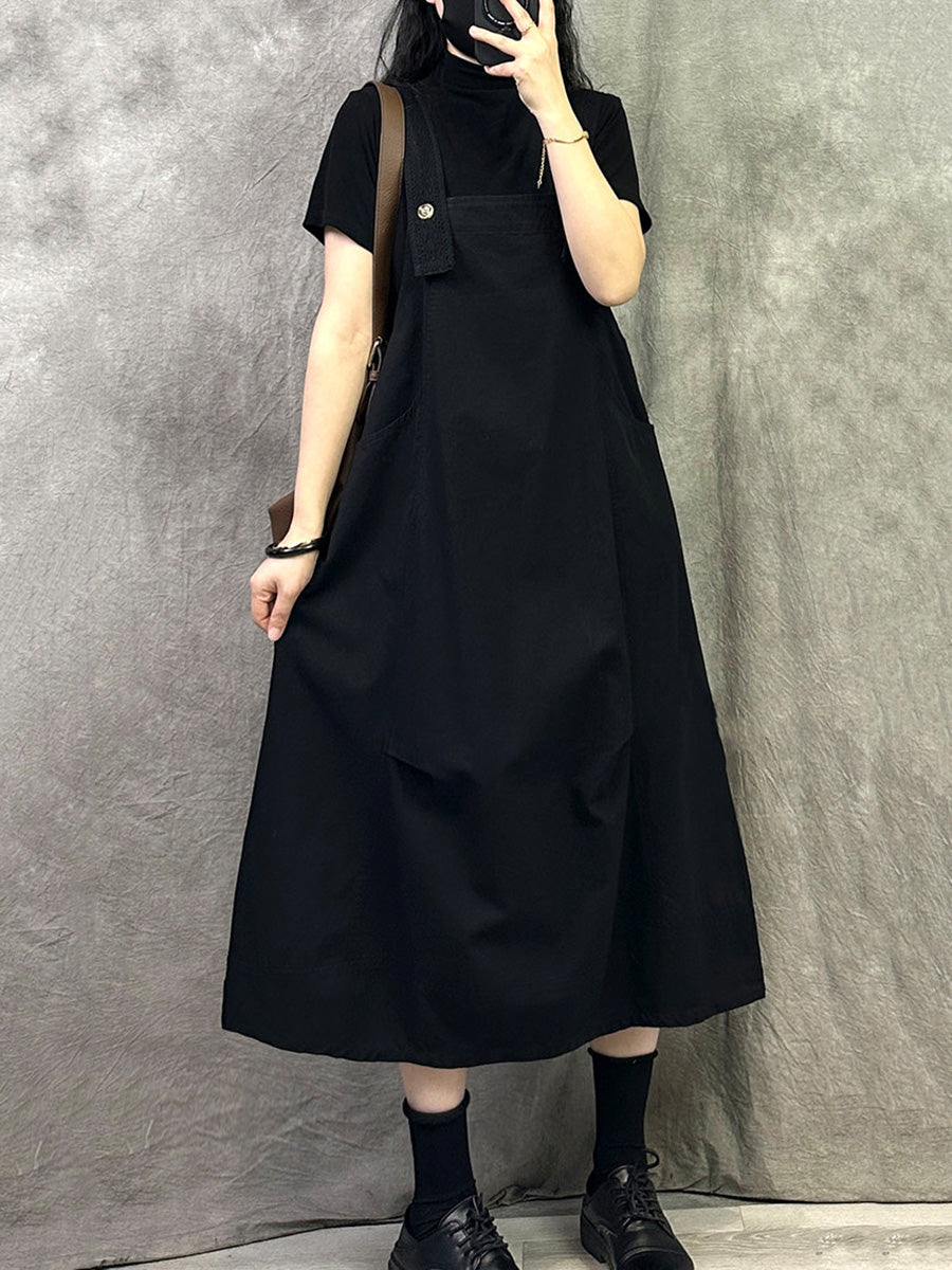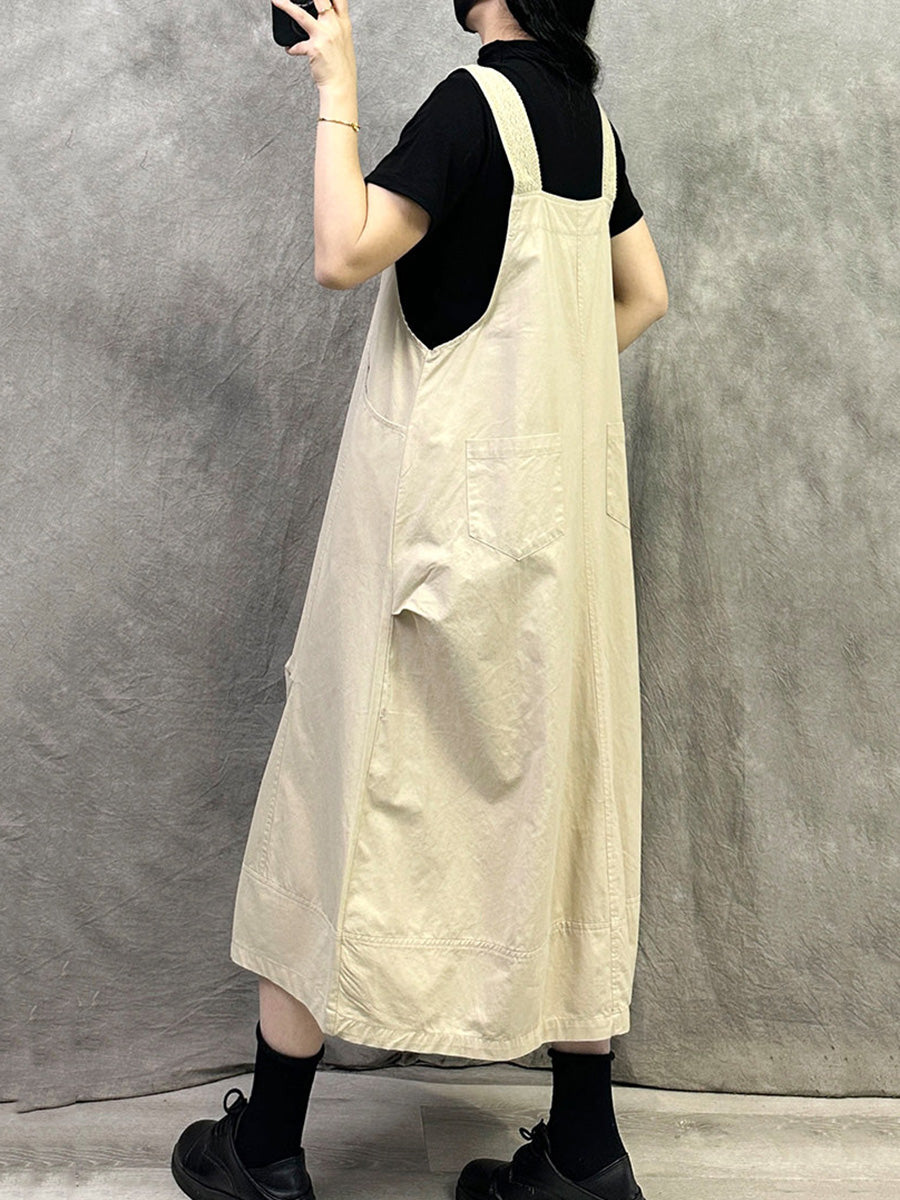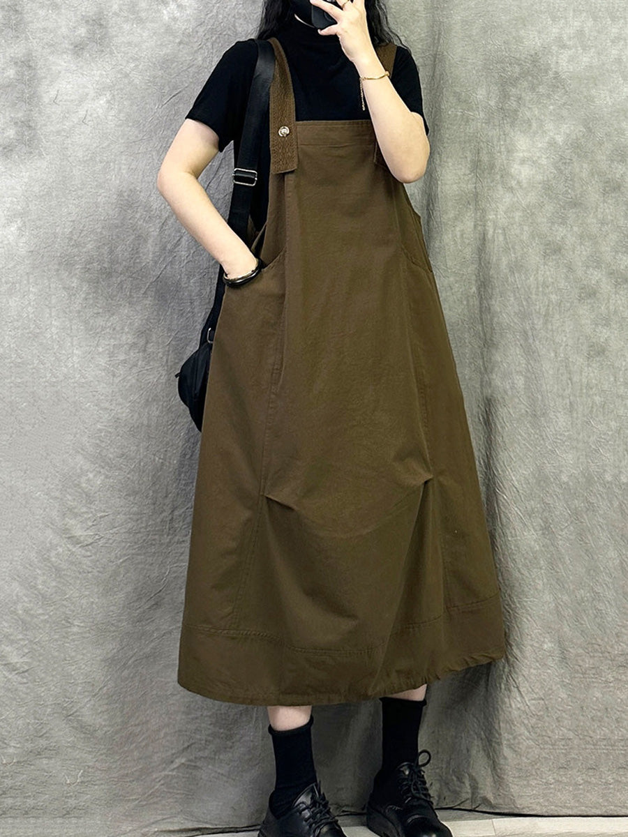 Women Casual Pure Color Cotton Overall Dress