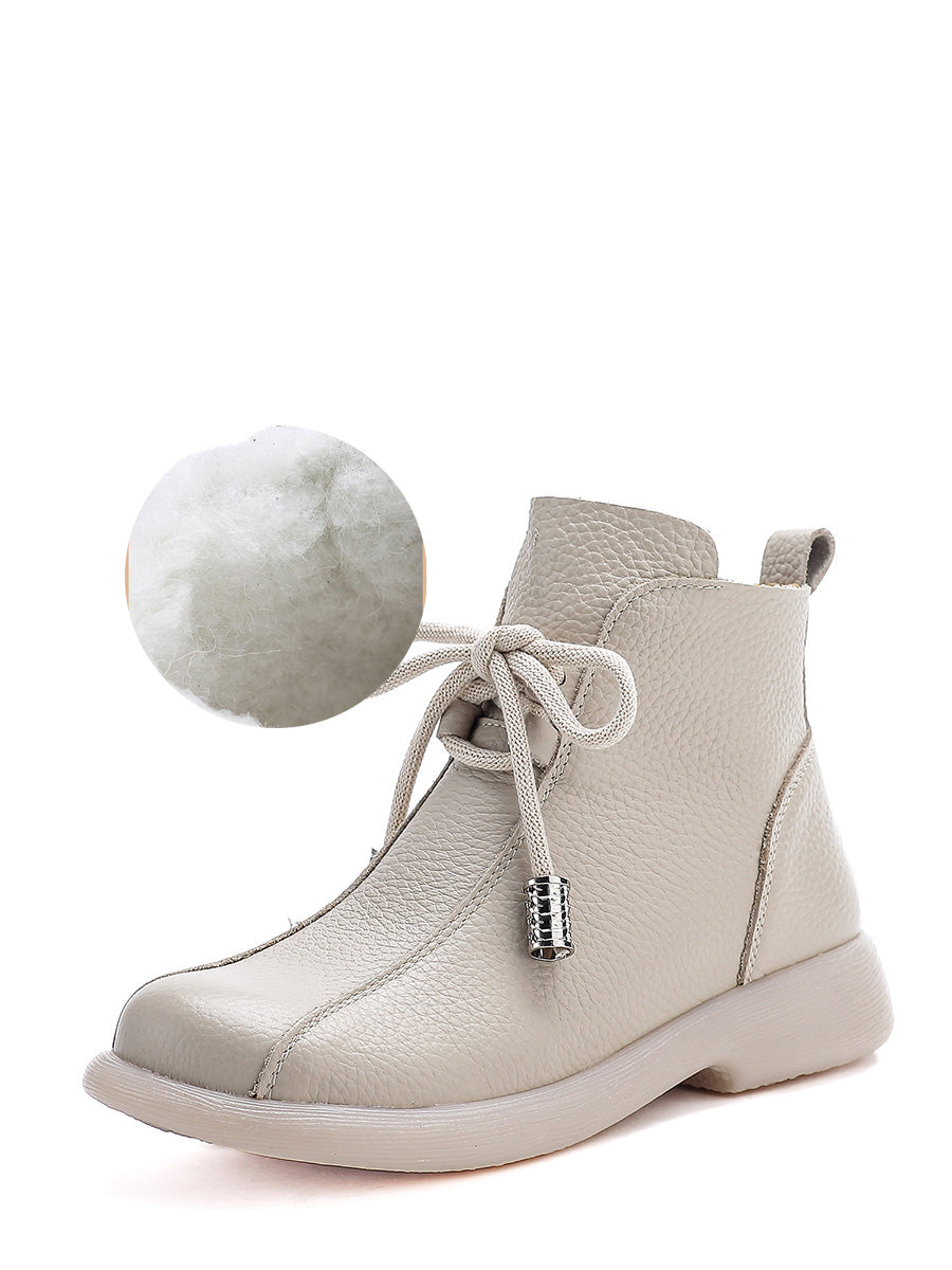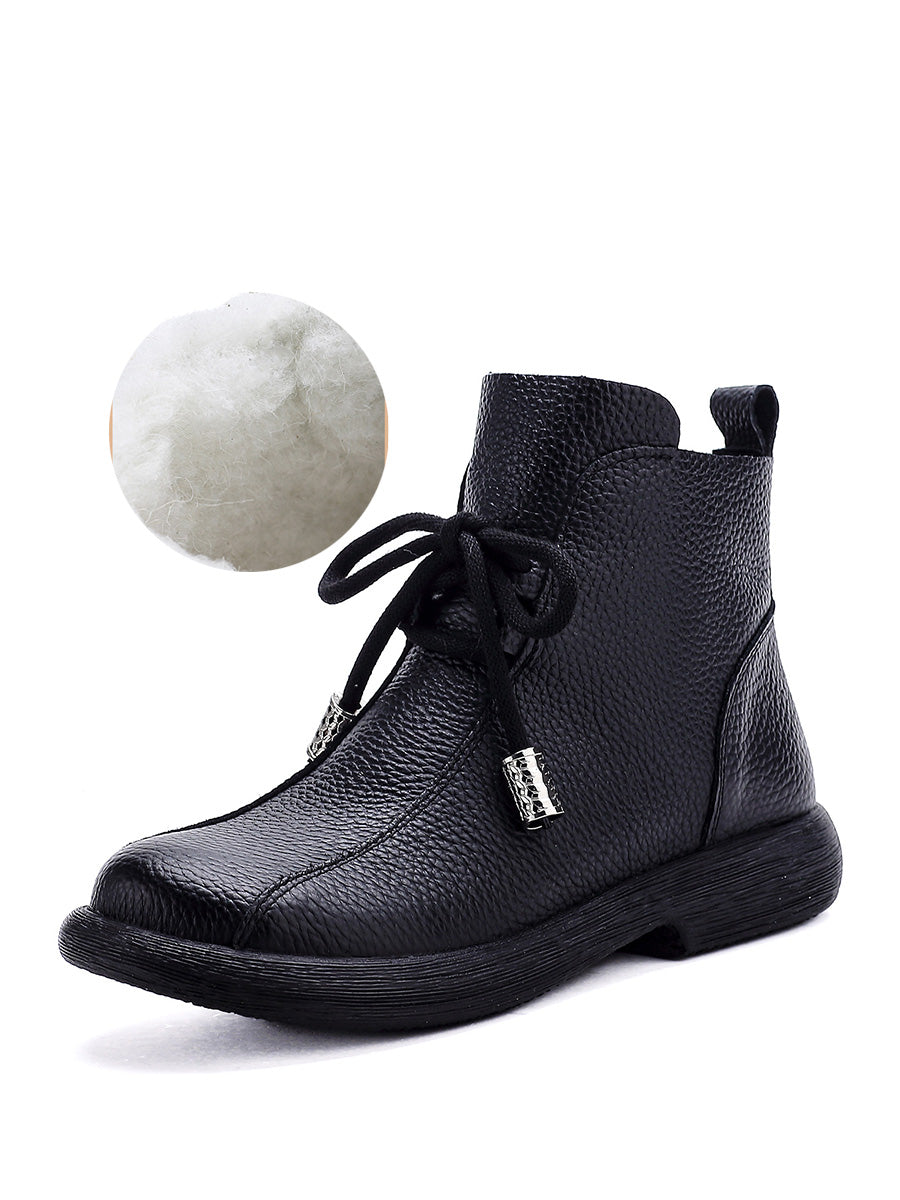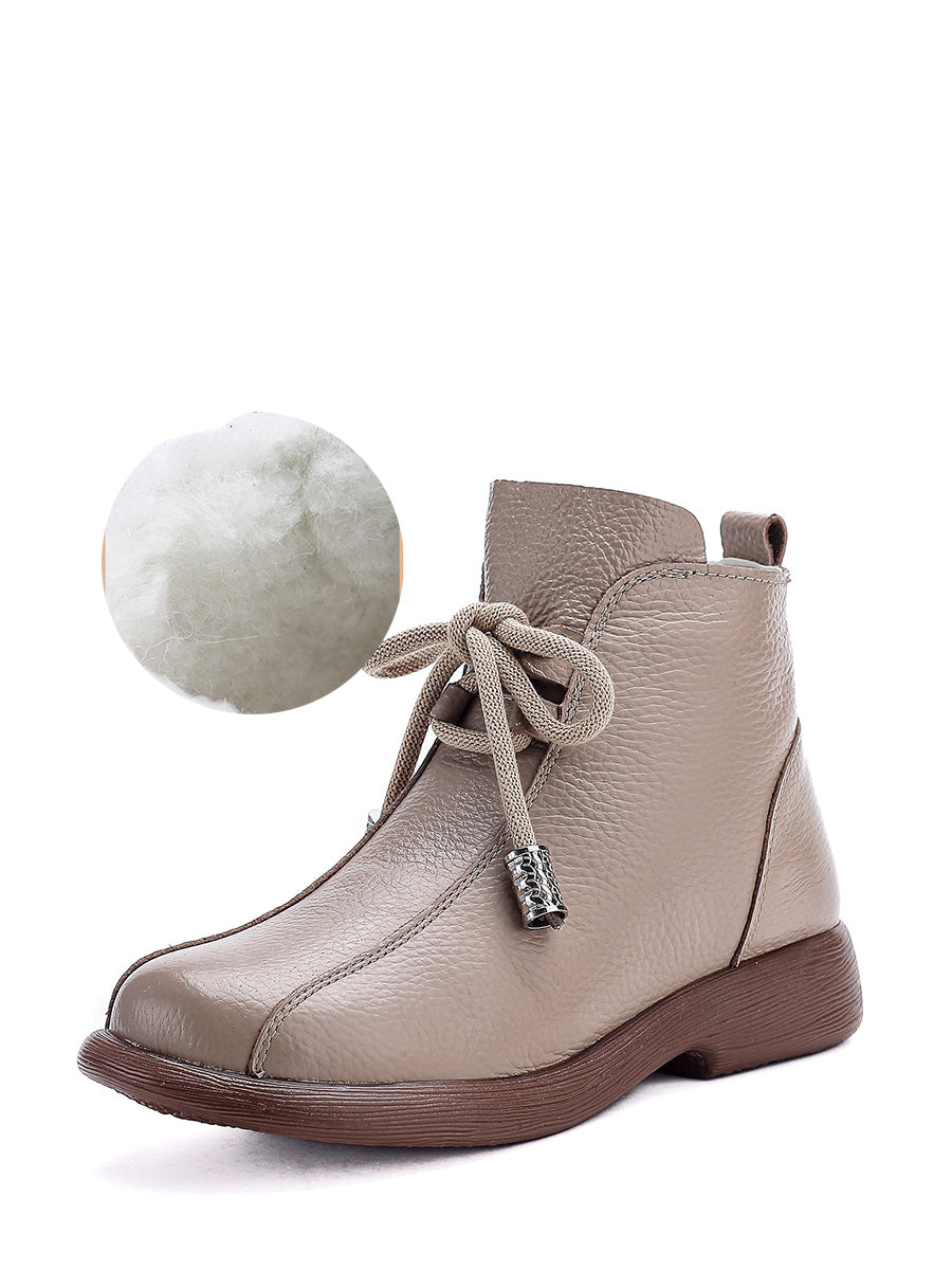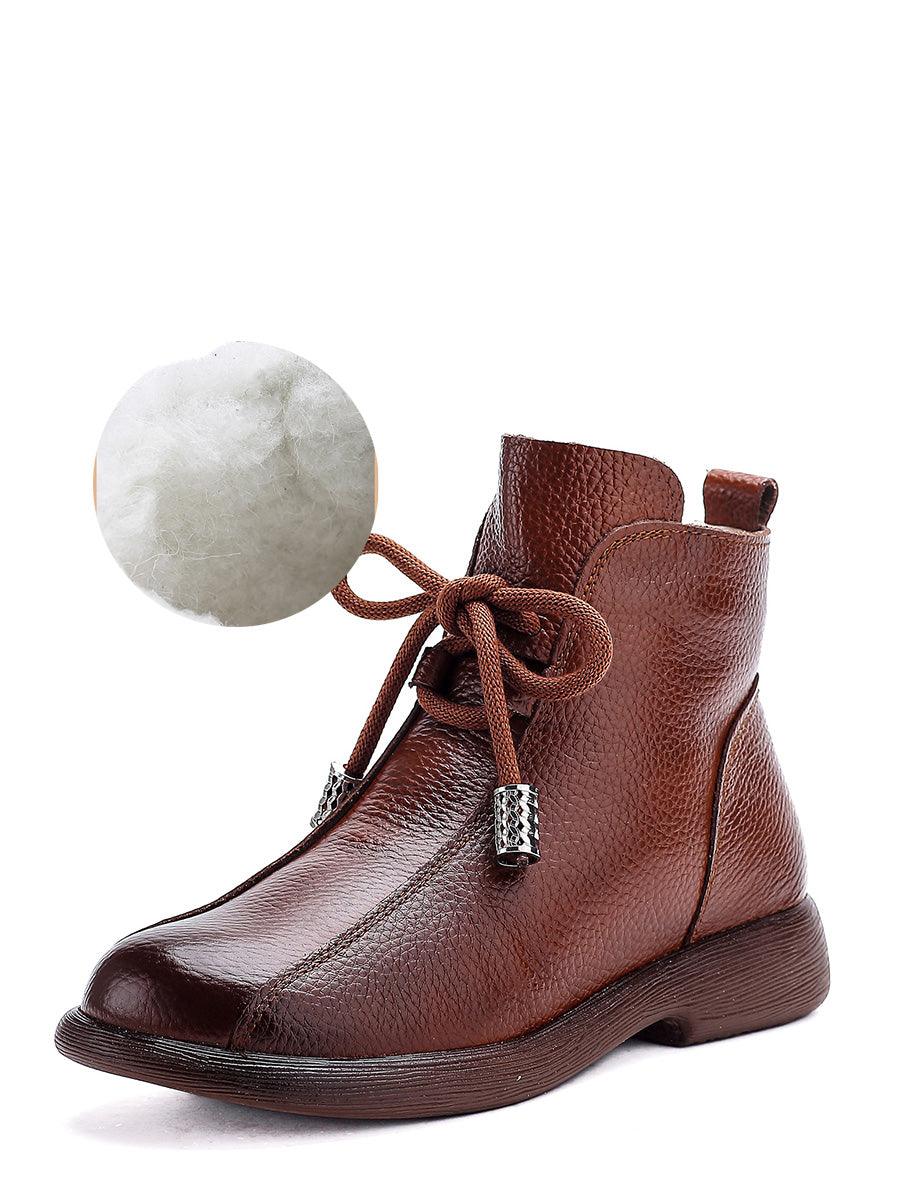 Women Retro Winter Genuine Leather Low Heel Ankle Boots