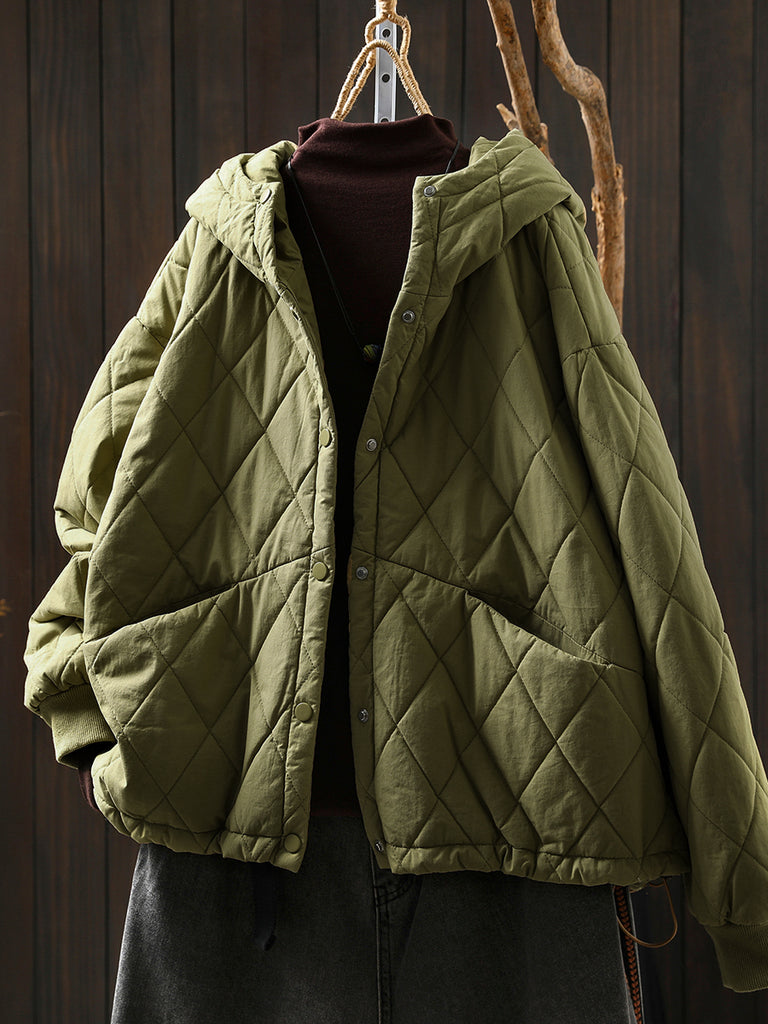Women Autumn Casual Pure Color Padded Hooded Jacket