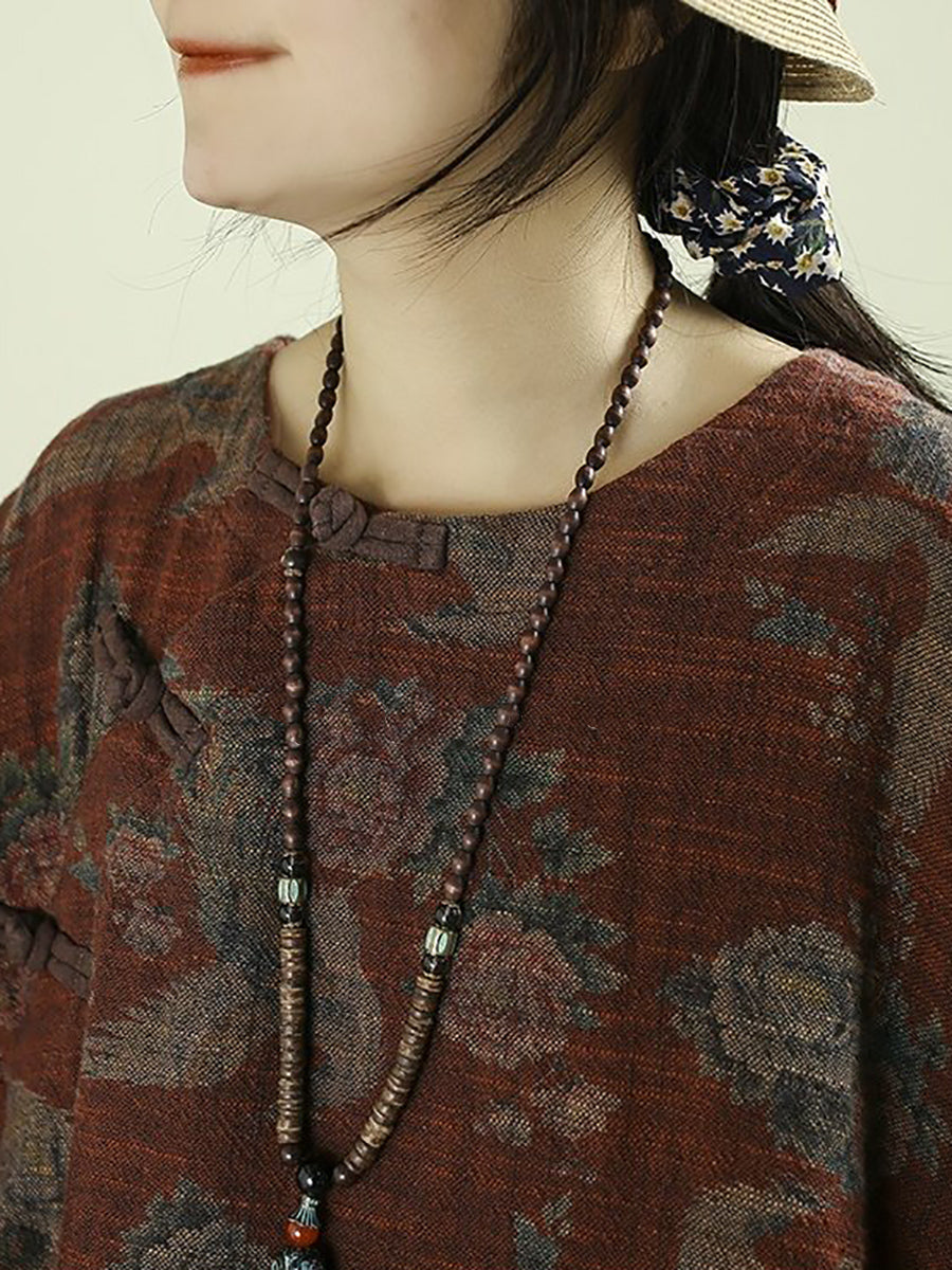 Women Spring Vintage Flower O-Neck 100%Linen Blouse