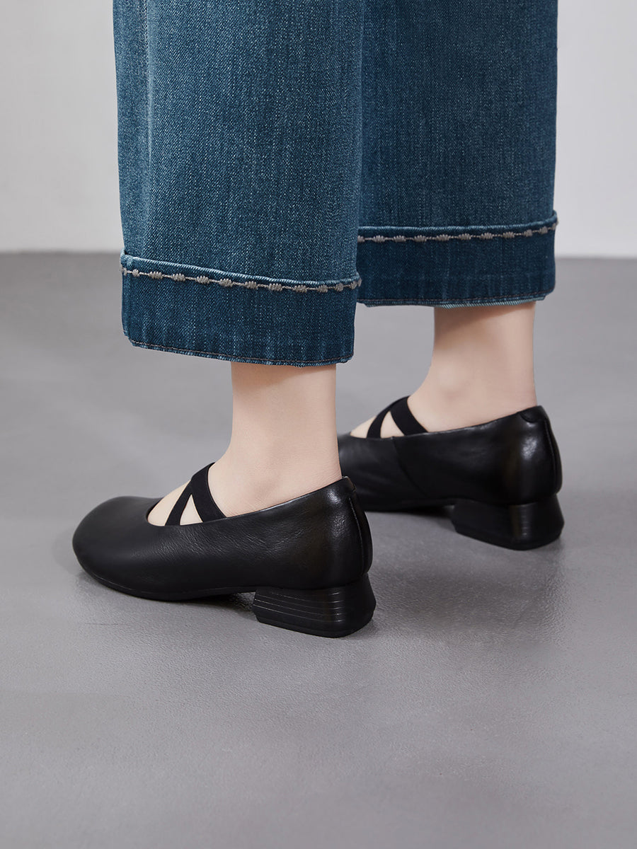 Women Summer Artsy Genuine Leather Low Heel Shoes