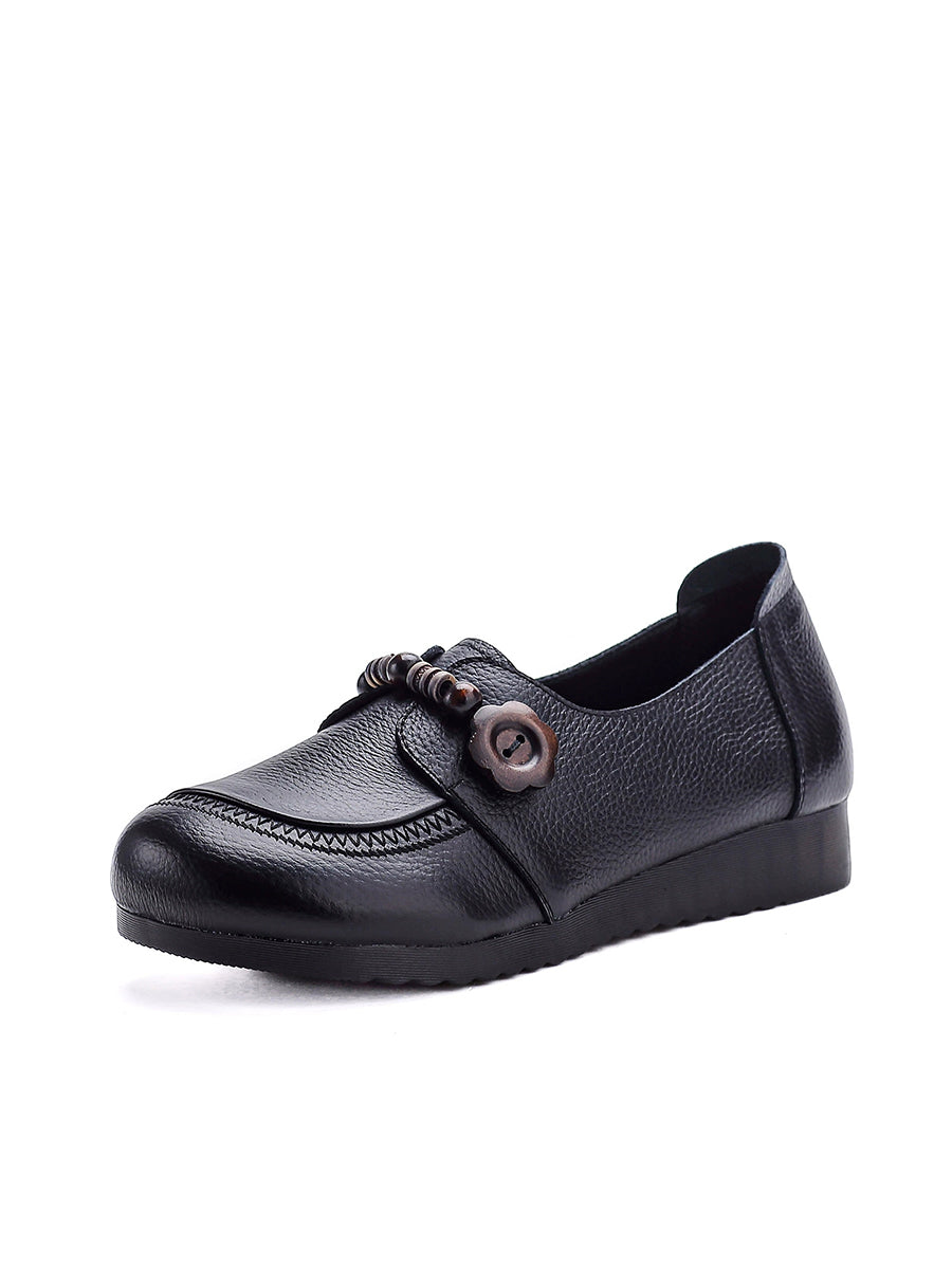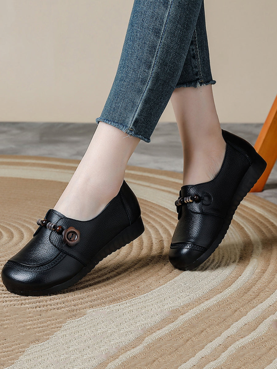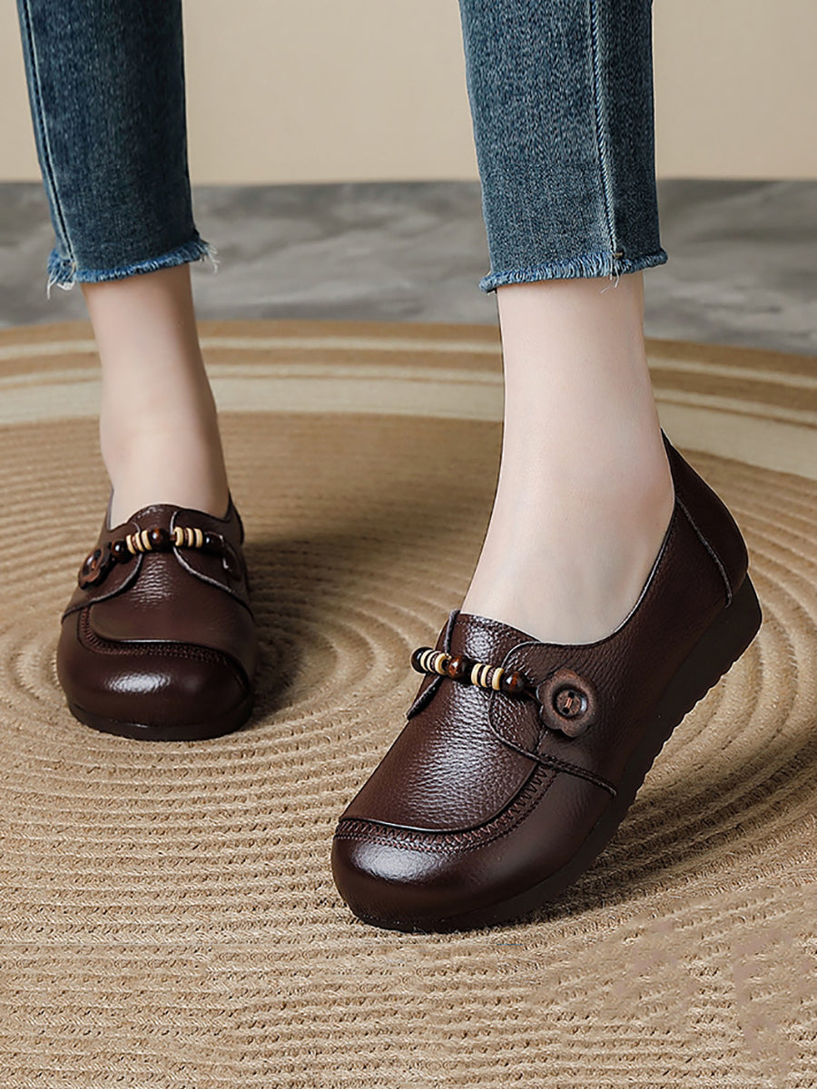 Women Vintage Genuine Leather Wooden Beads Shoes