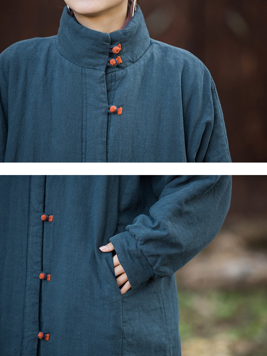 Women Winter Pure Color Stand Collar Padded Overcoat