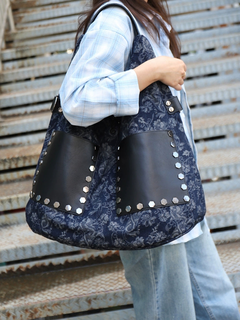 Women Vintage Flower Spliced Shoulder Bag Crossbody Bag