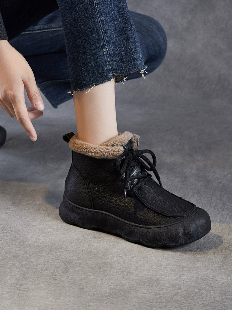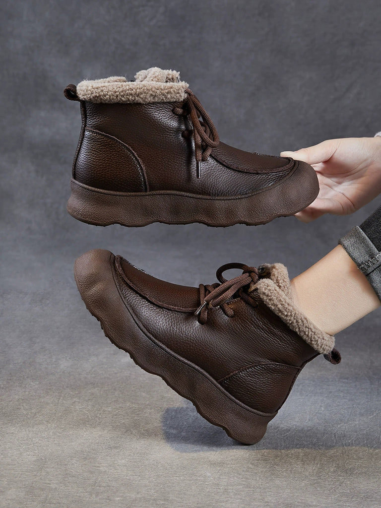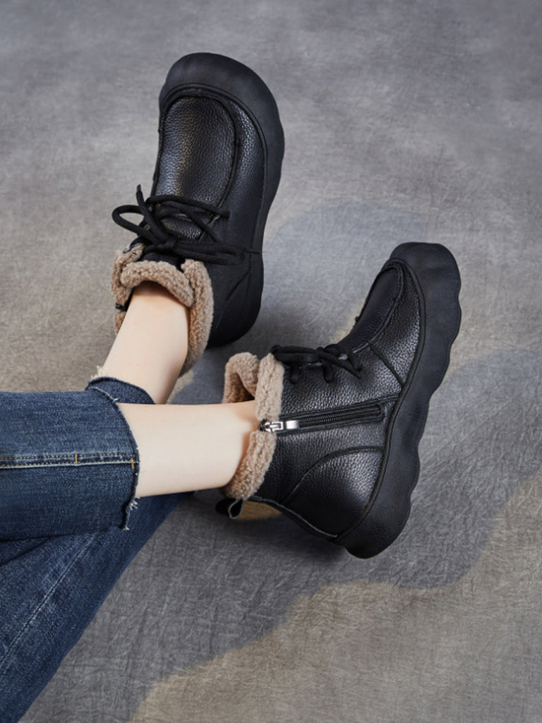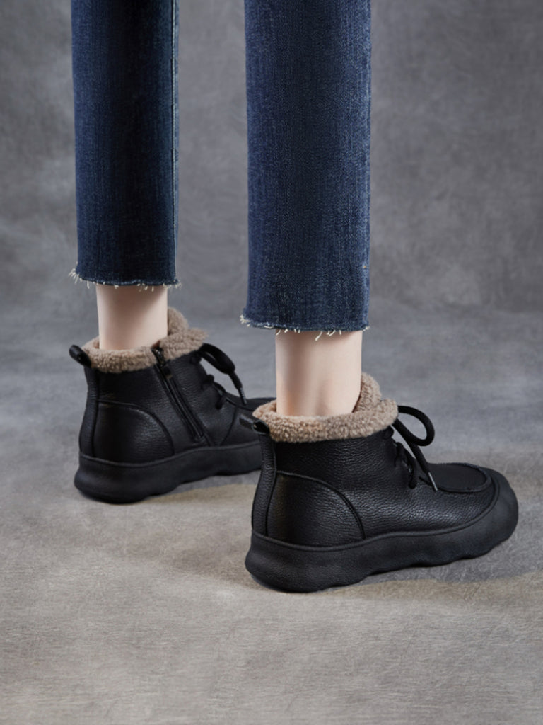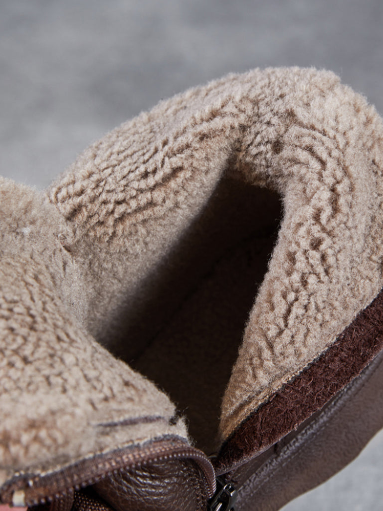 Women Vintage Genuine Leather Fleece-lined Ankle Boots