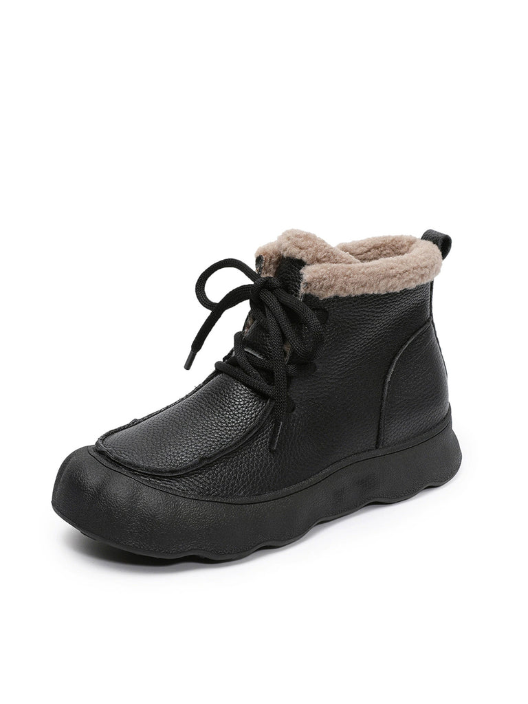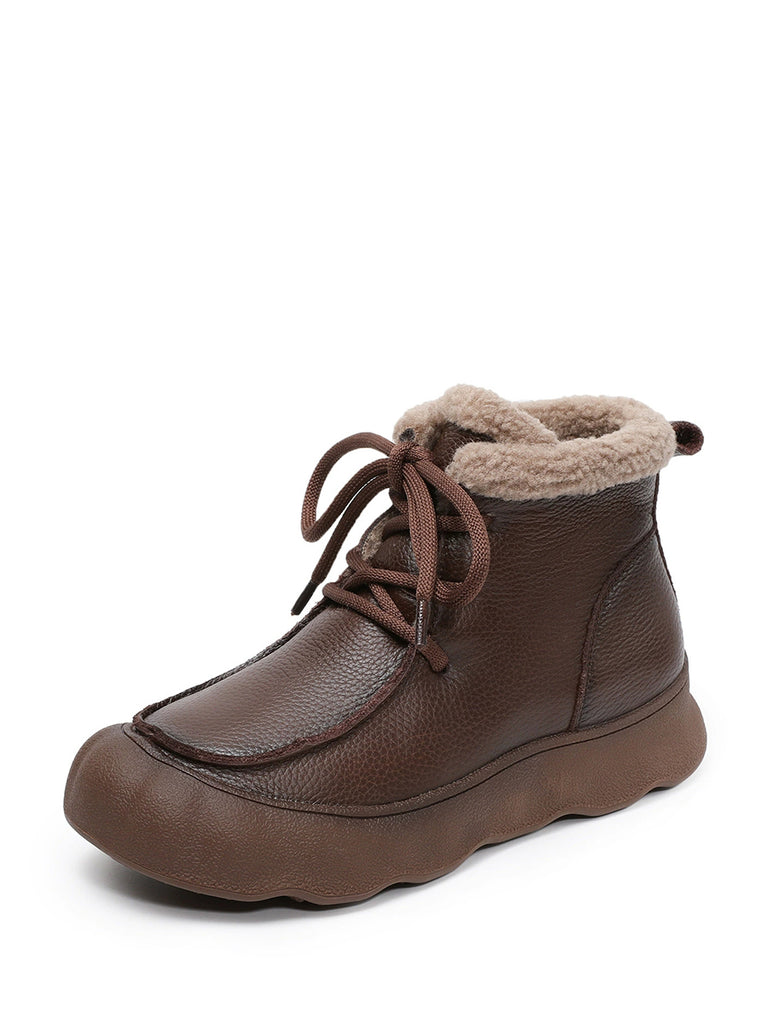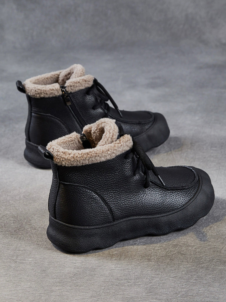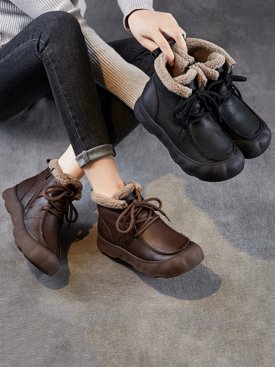 Women Vintage Genuine Leather Fleece-lined Ankle Boots