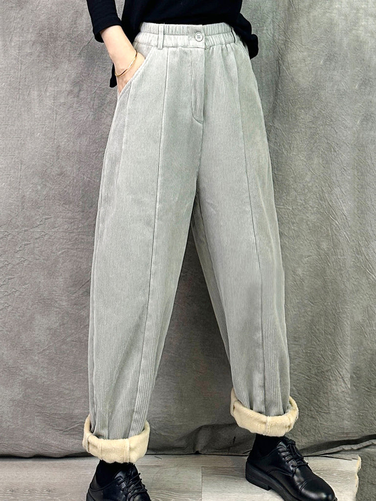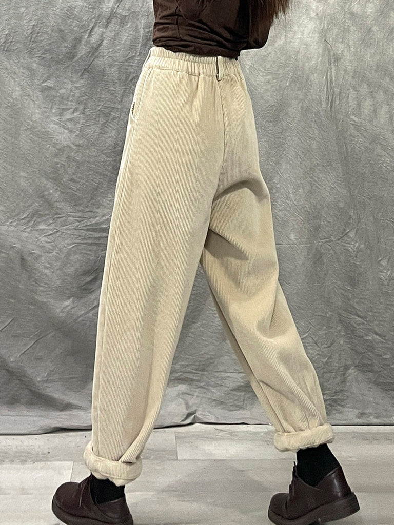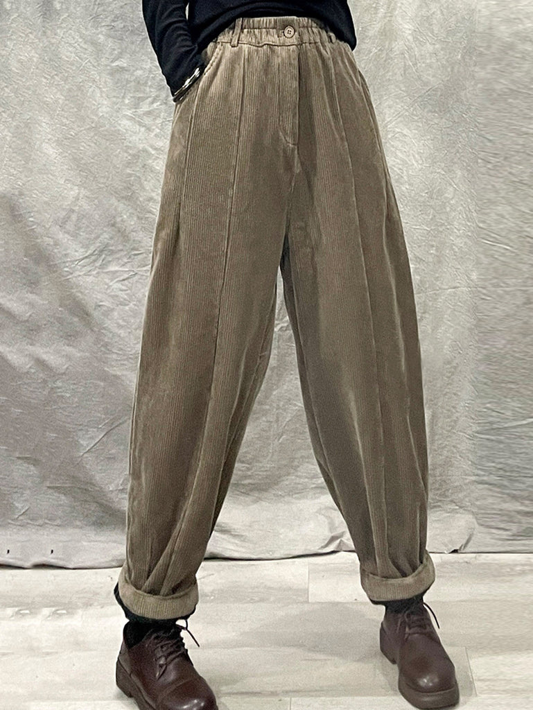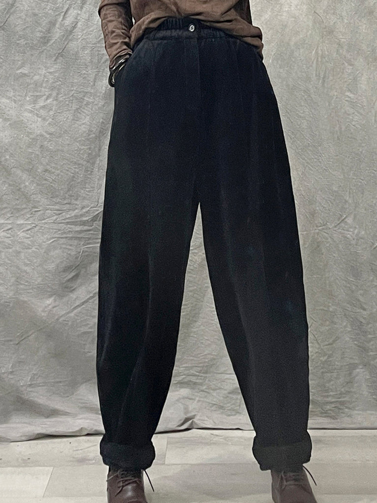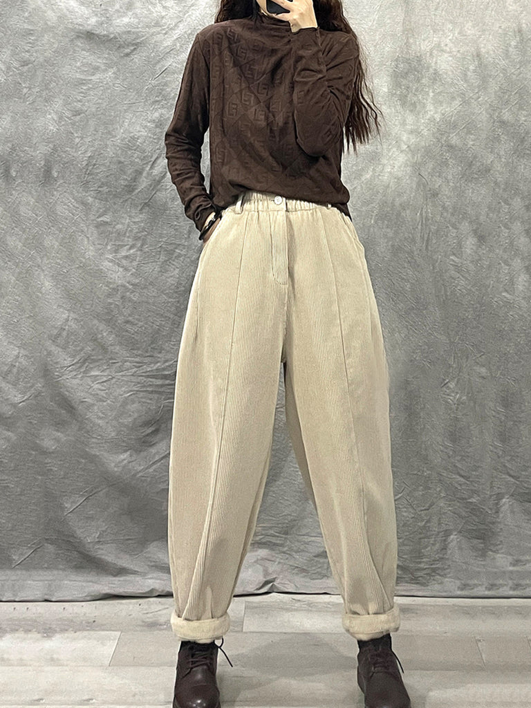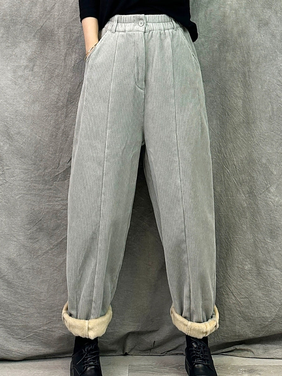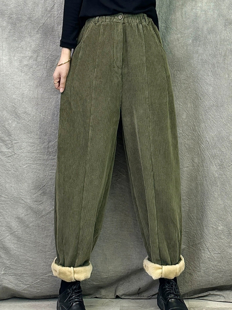 Women Winter Retro Croduroy Spliced Padded Harem Pants