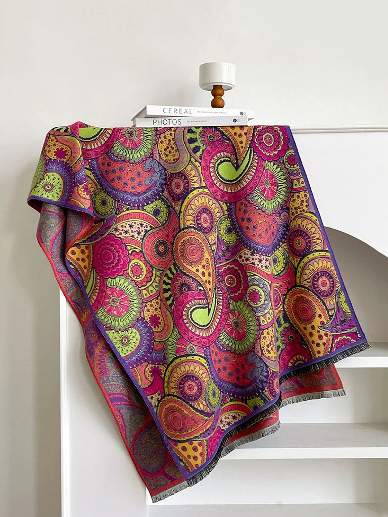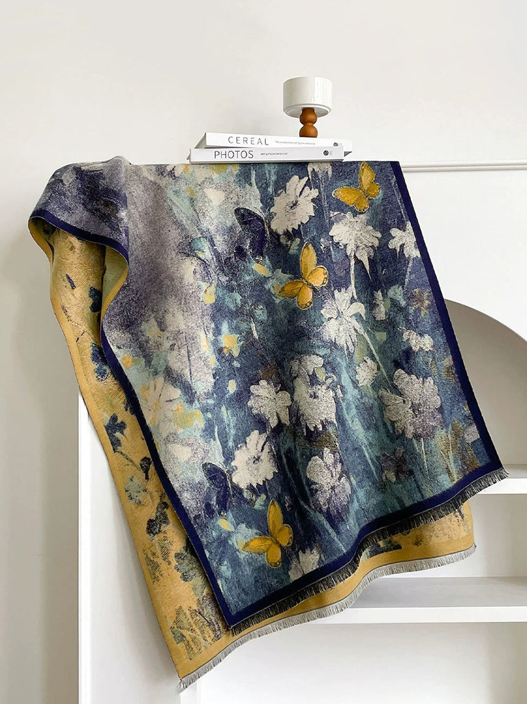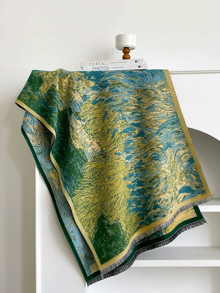 Winter Vintage Oil Painting Tassel Warm Shawl Scarf