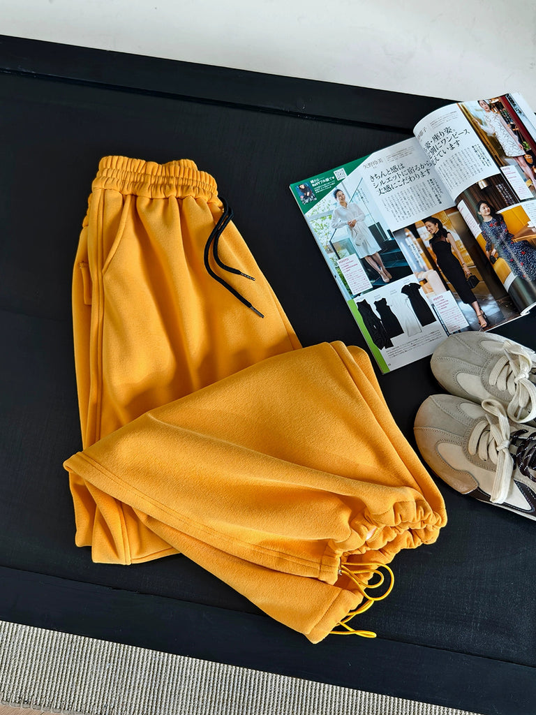 Women Autumn Casual Pure Color Fleece-lined Pants