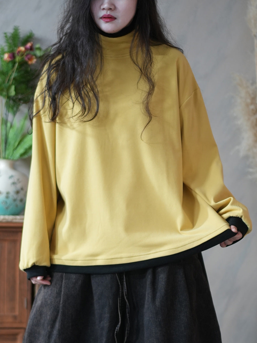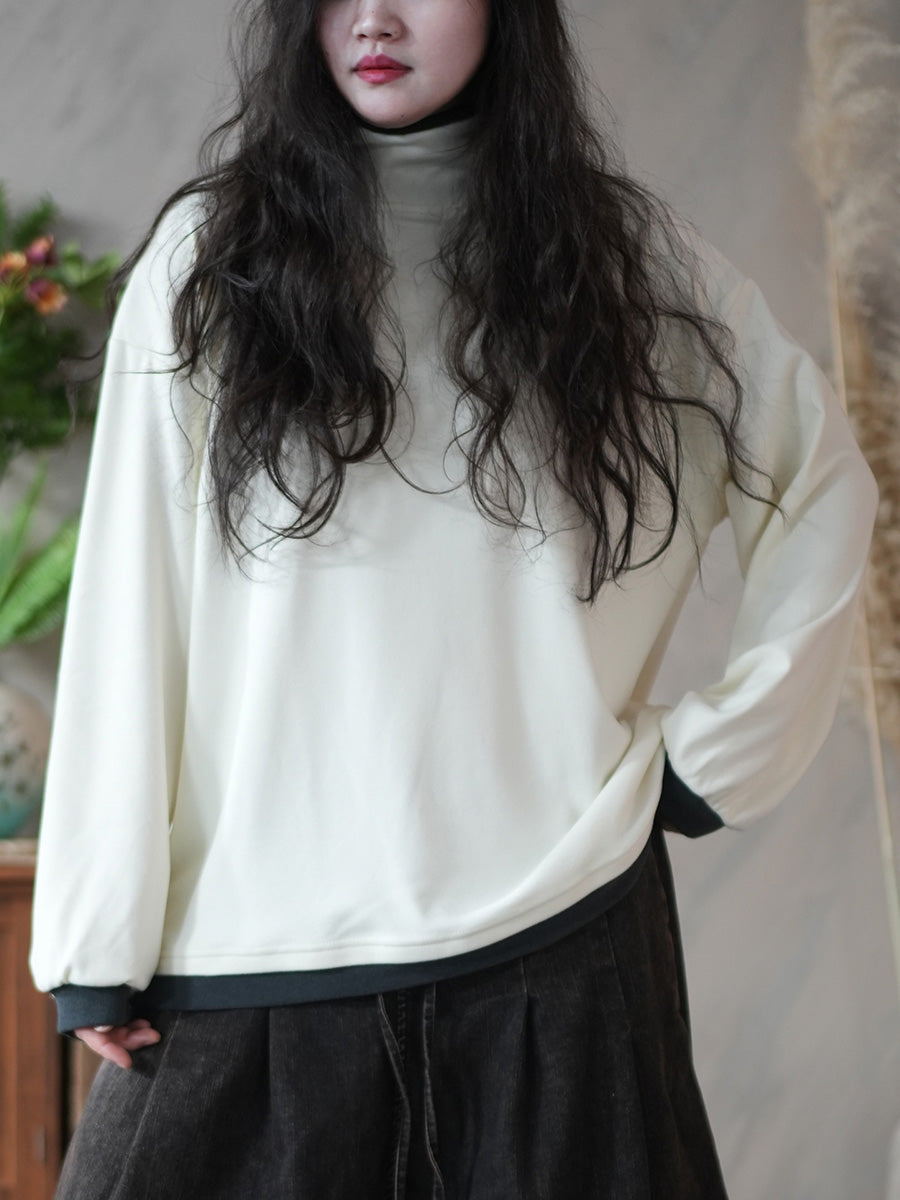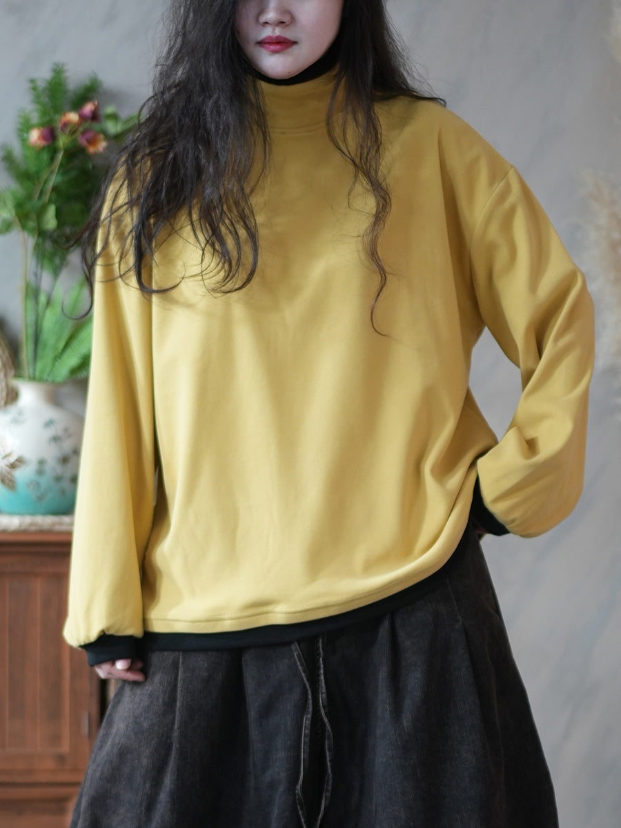 Women Casual Winter Colorblock Turtleneck Blouse