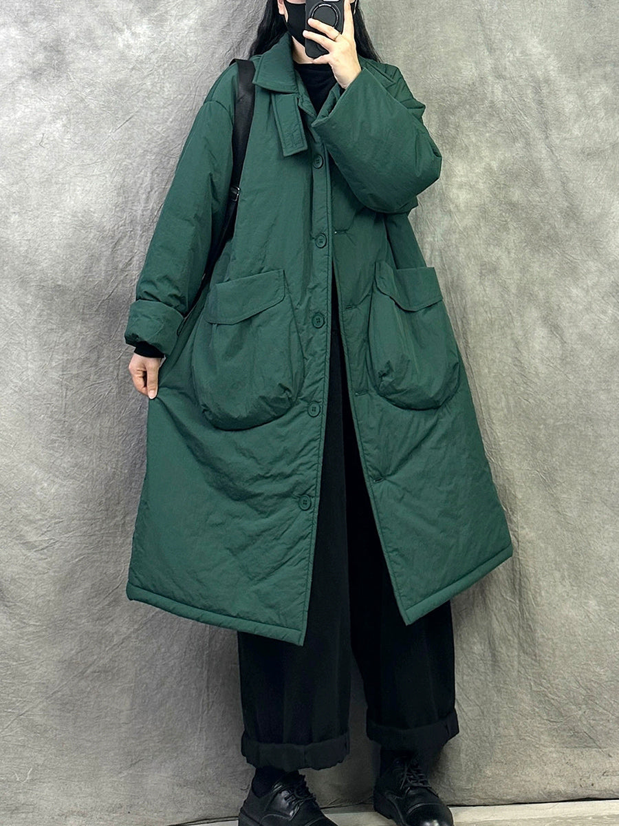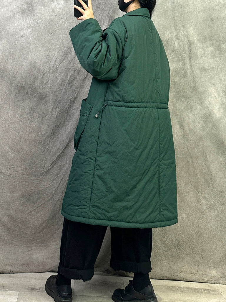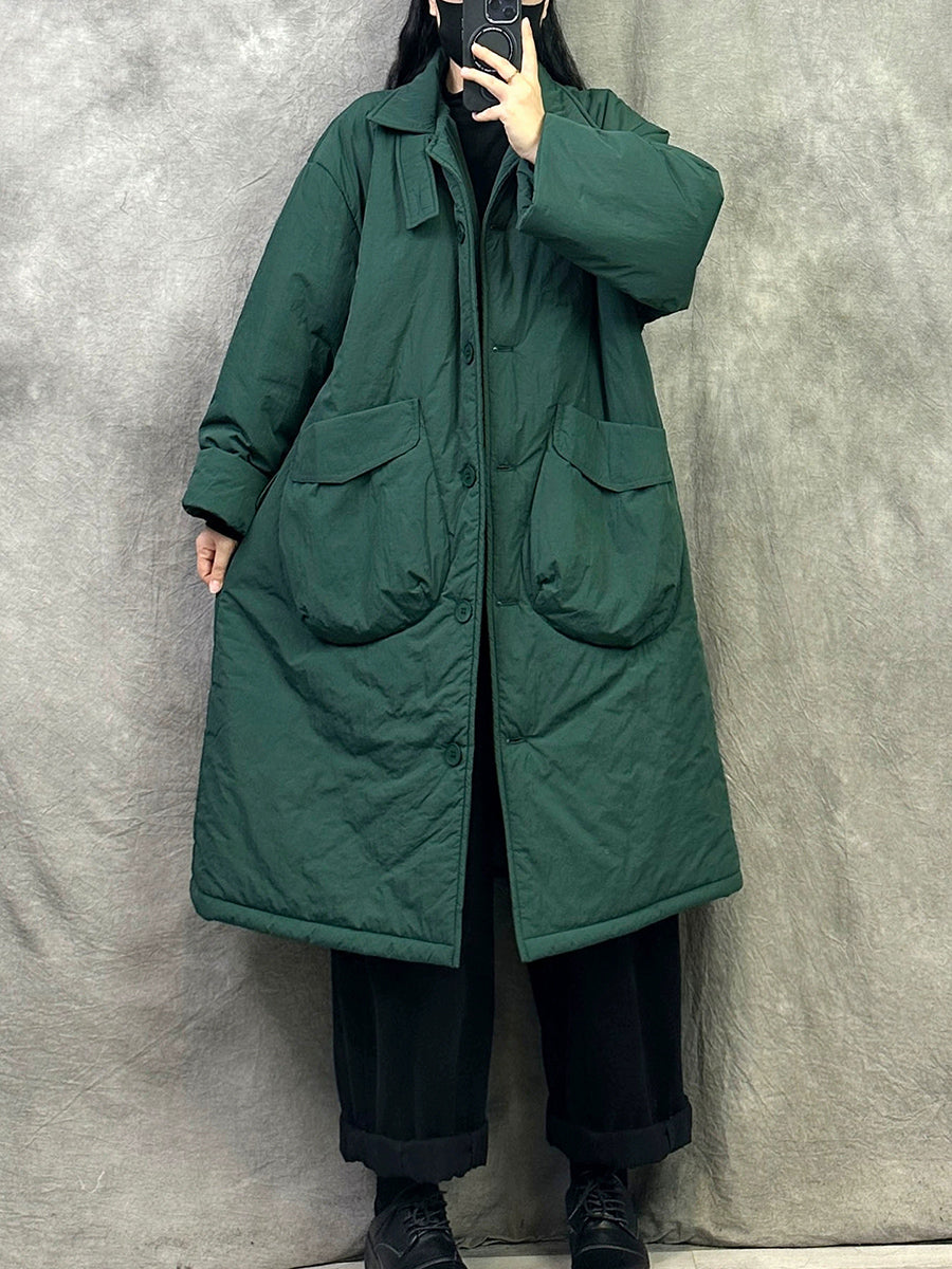 Women Winter Pure Color Padded Turn-down Collar Coat