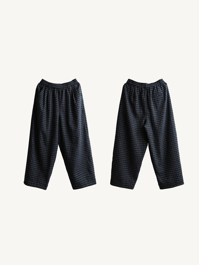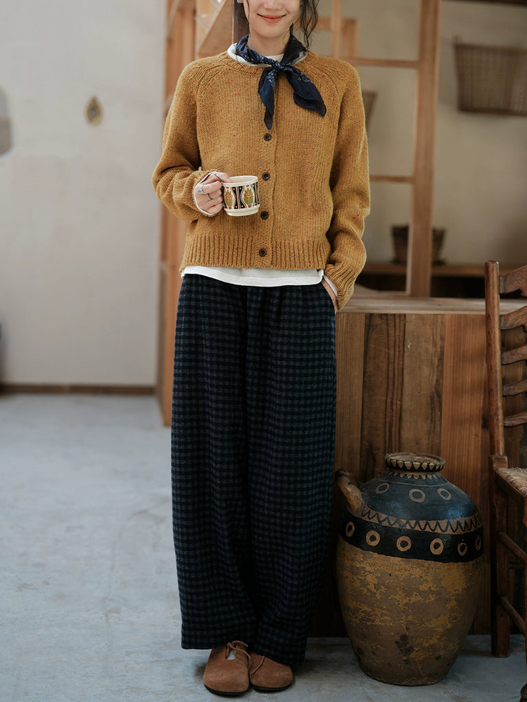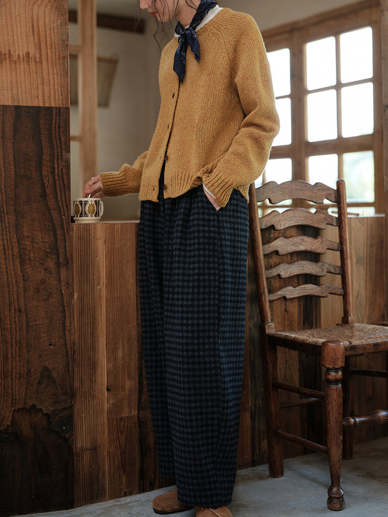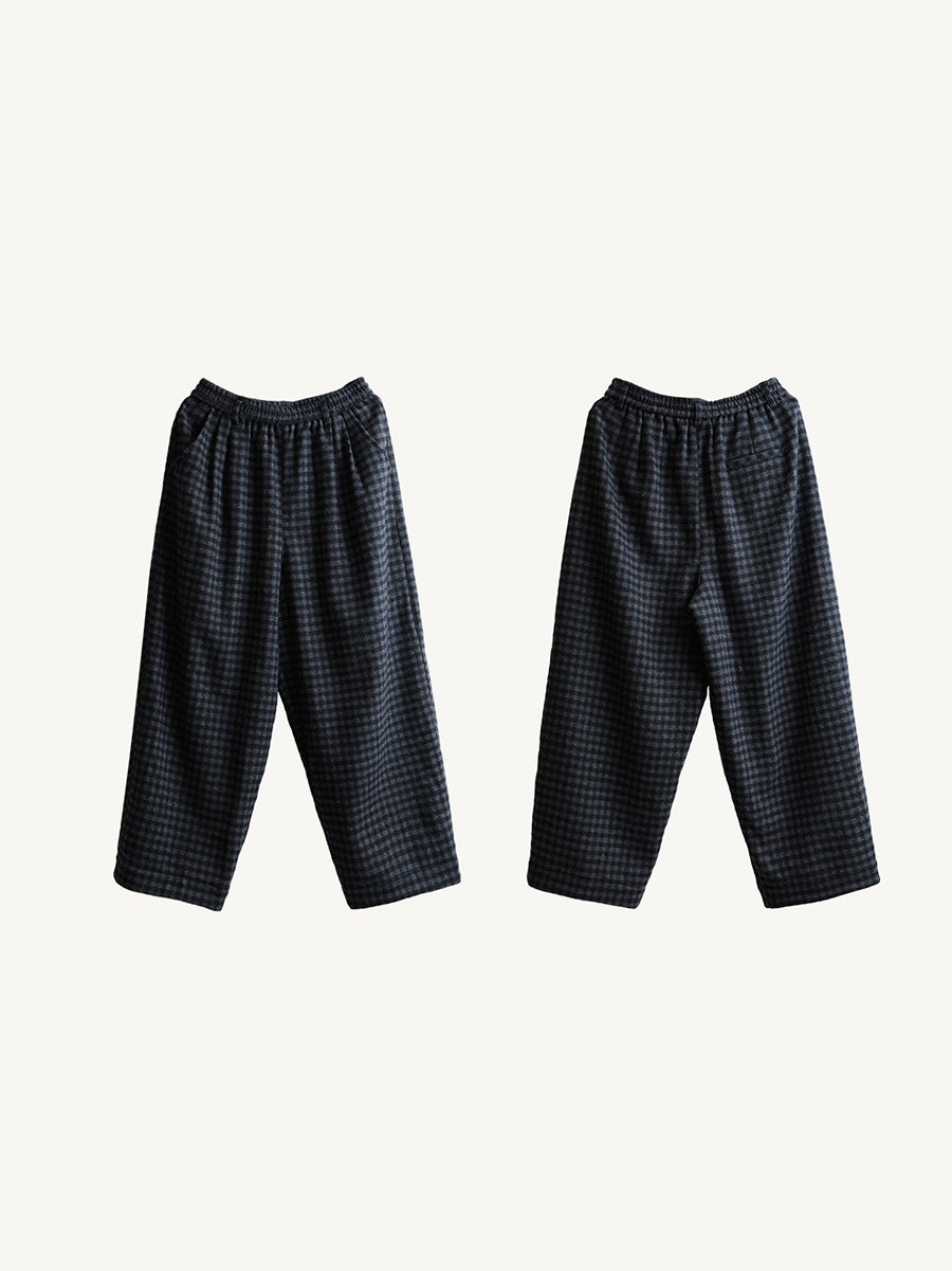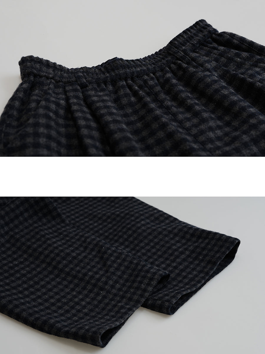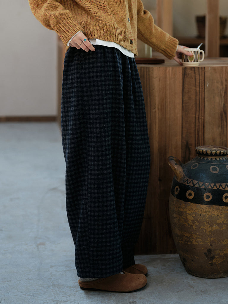 Women Winter Warm Retro Plaid Wool Straight Pants
