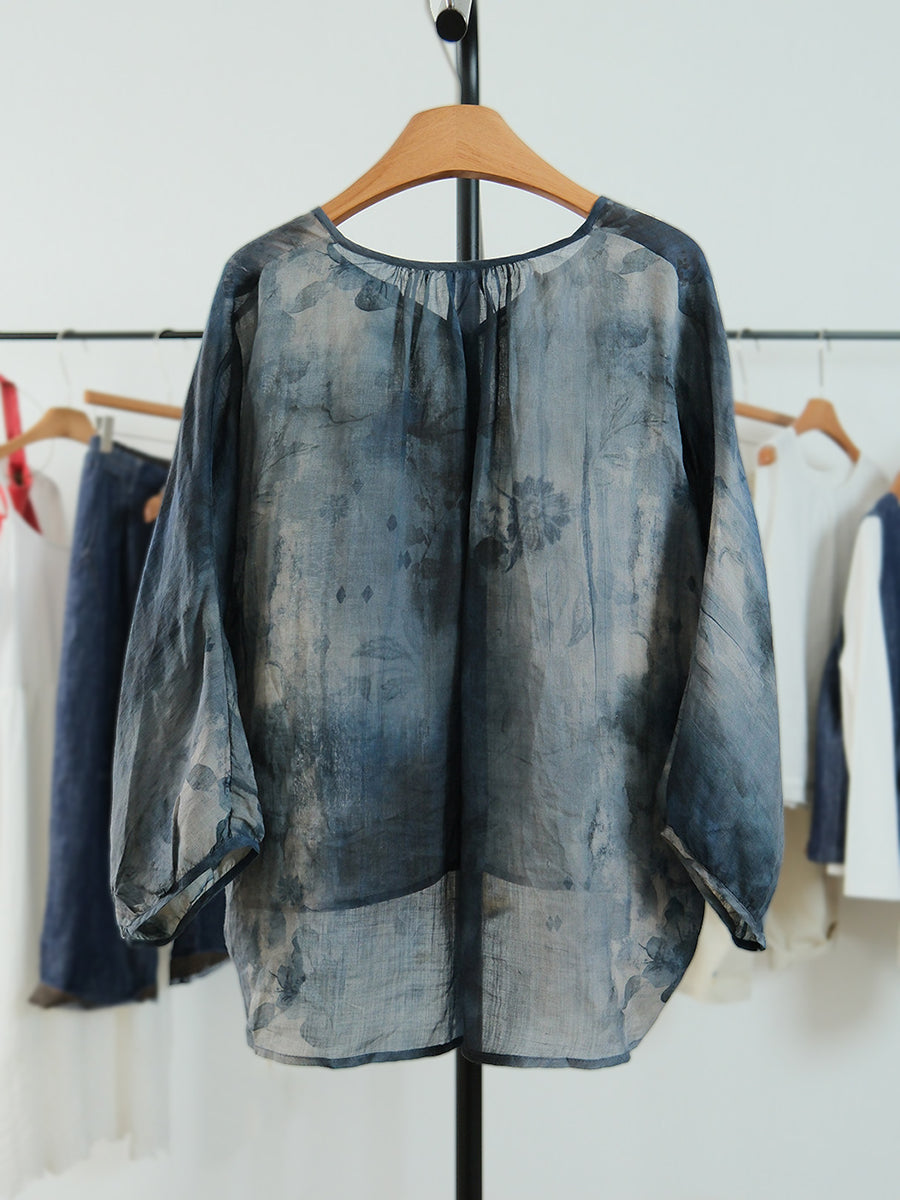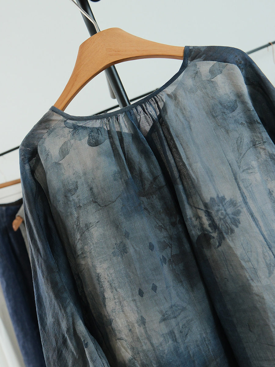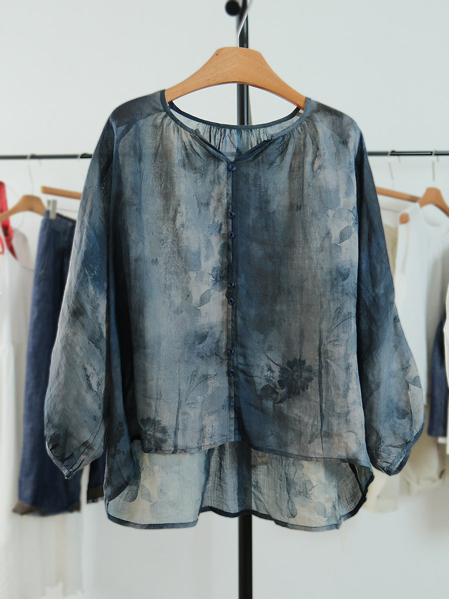 Women Summer Artsy Flower V-Neck Blouse