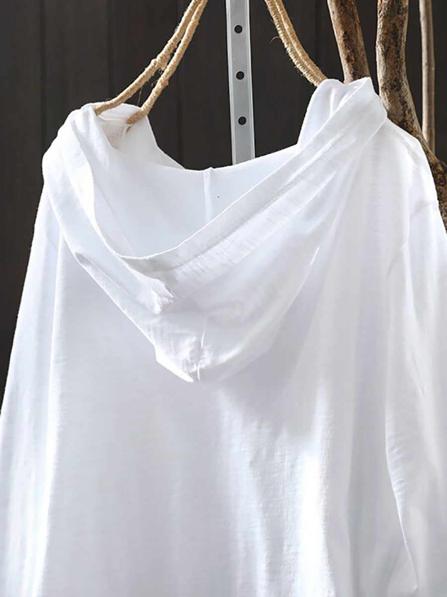 Women Summer Casual Pure Color 100%Cotton Hoodie