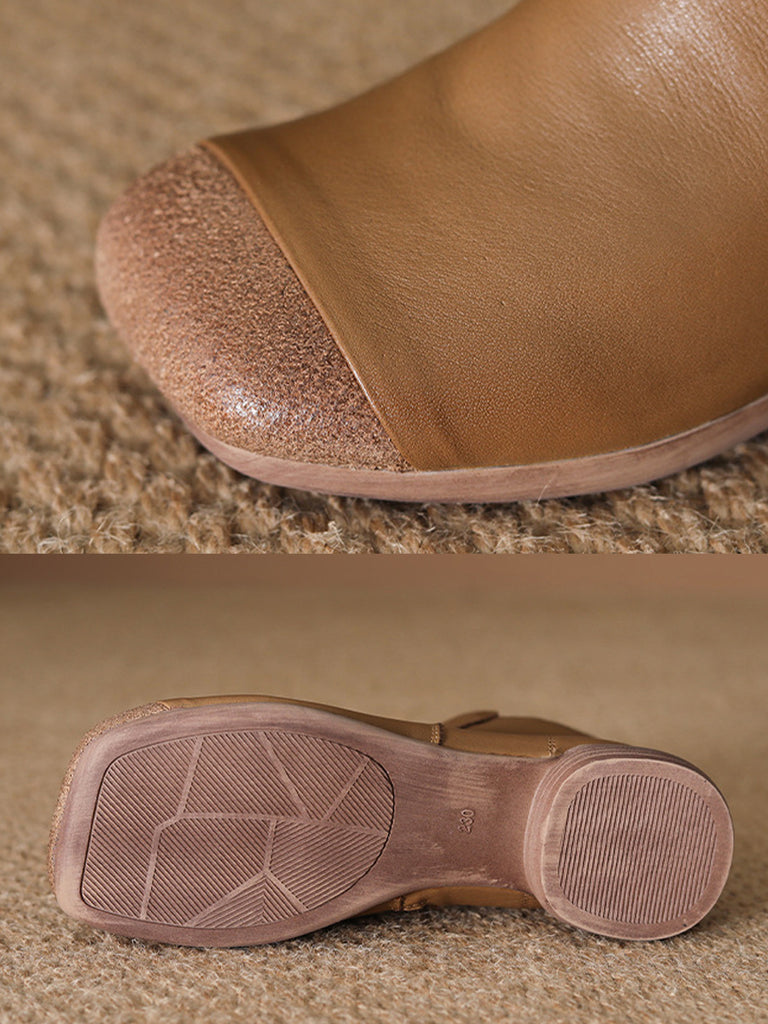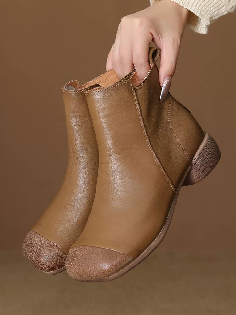 Women Vintage Genuine Leather Low Heel Ankle Boots