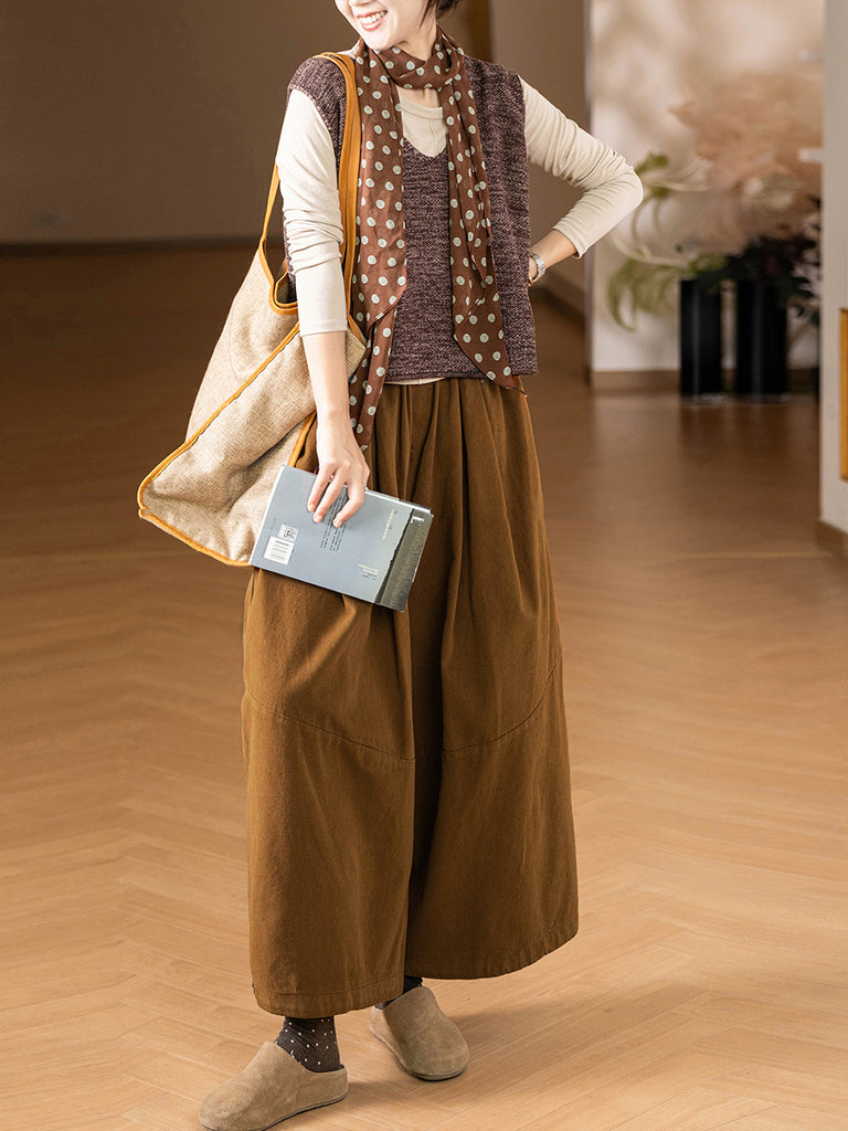 Women Autumn Casual Pure Color 100%Cotton Wide-leg Pants