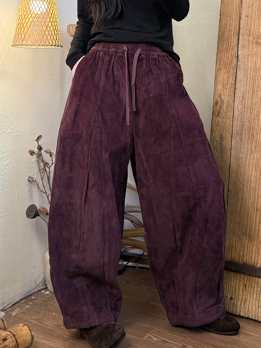 Plus Size Women Casual Winter Corduroy Fleece-lined Harem Pants