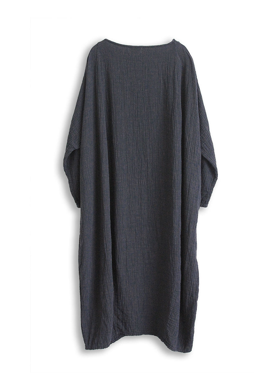 Expertly crafted from a blend of linen and cotton, this dress boasts a timeless solid pattern and features an O-neck collar and full raglan sleeves. The loose and vintage style adds a relaxed yet elegant touch to your wardrobe. Ideal for both spring and autumn, this dress is a must-have for any fashion-forward individual.