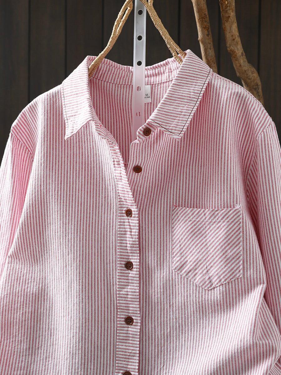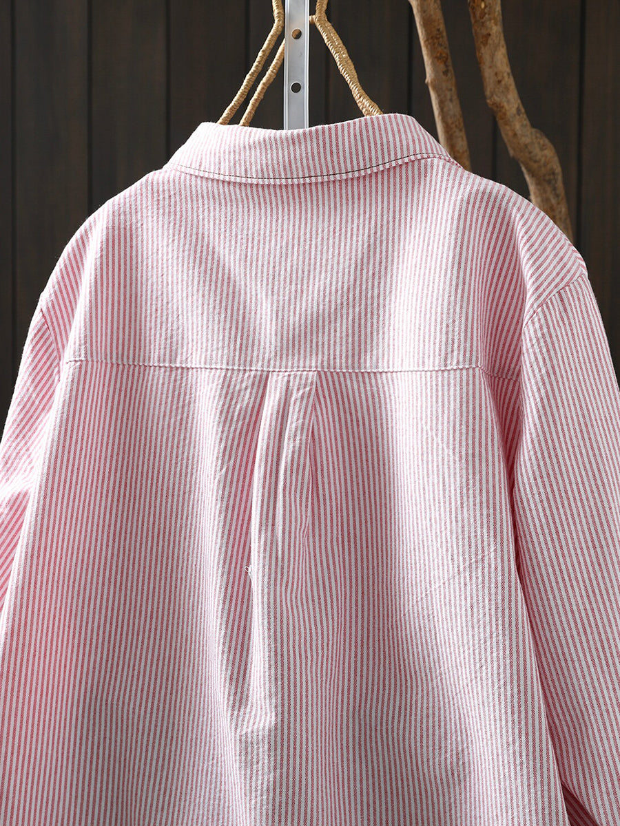 Women Spring Artsy Stripe 100%Cotton Shirt