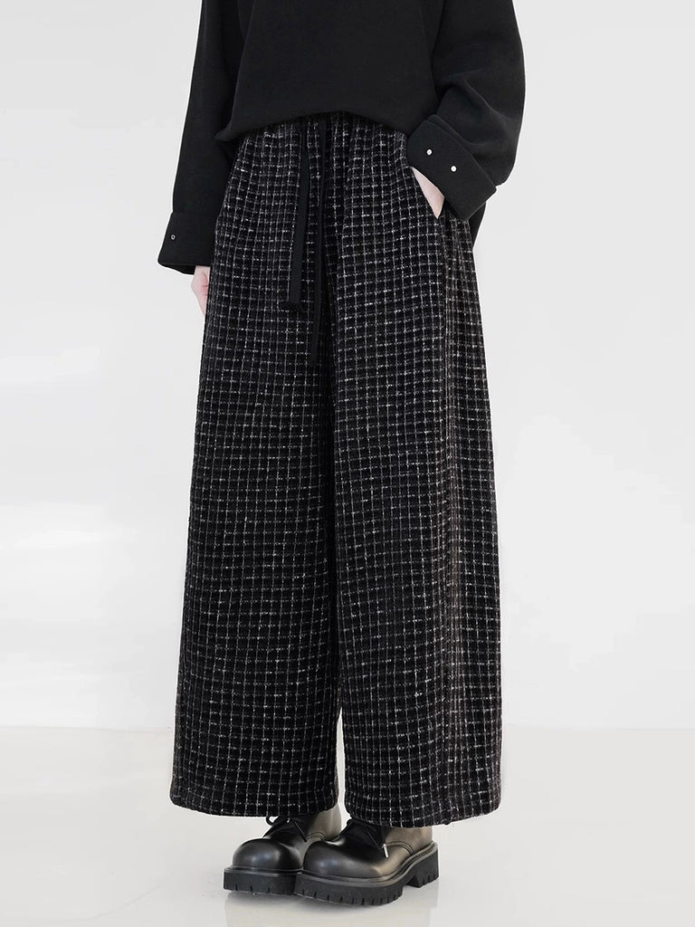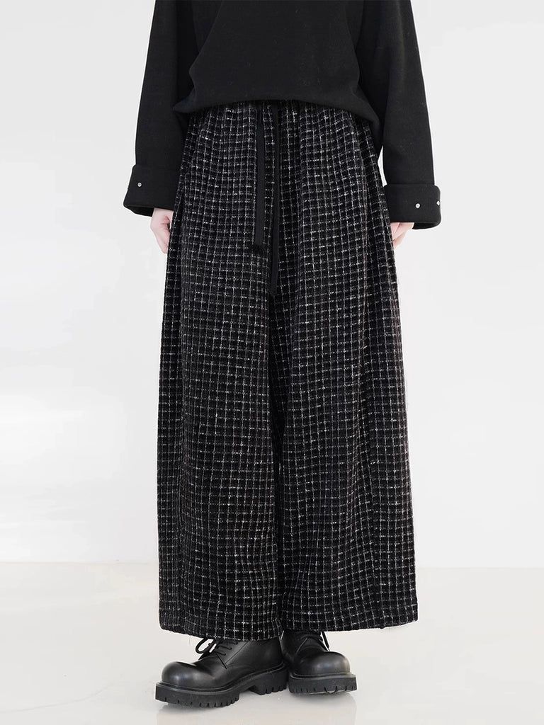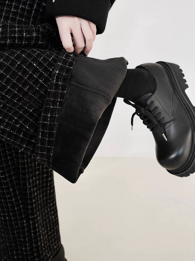 Plus Size Women Vintage Plaid Fleece-lined Staight Pants