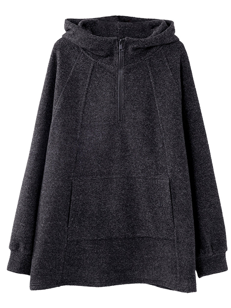 Plus Size Women Winter Casual Pure Color Fleece-lined Hoodie
