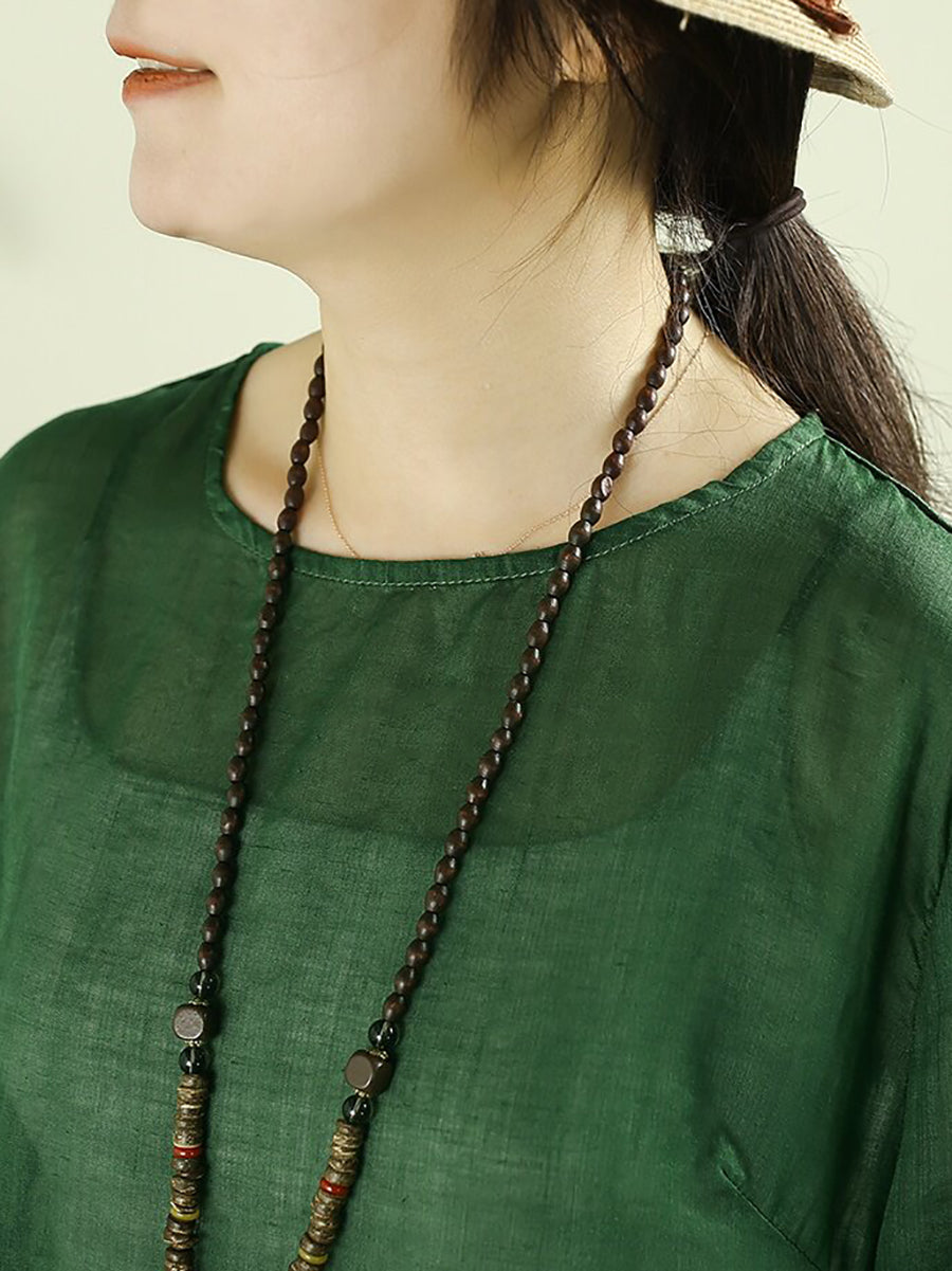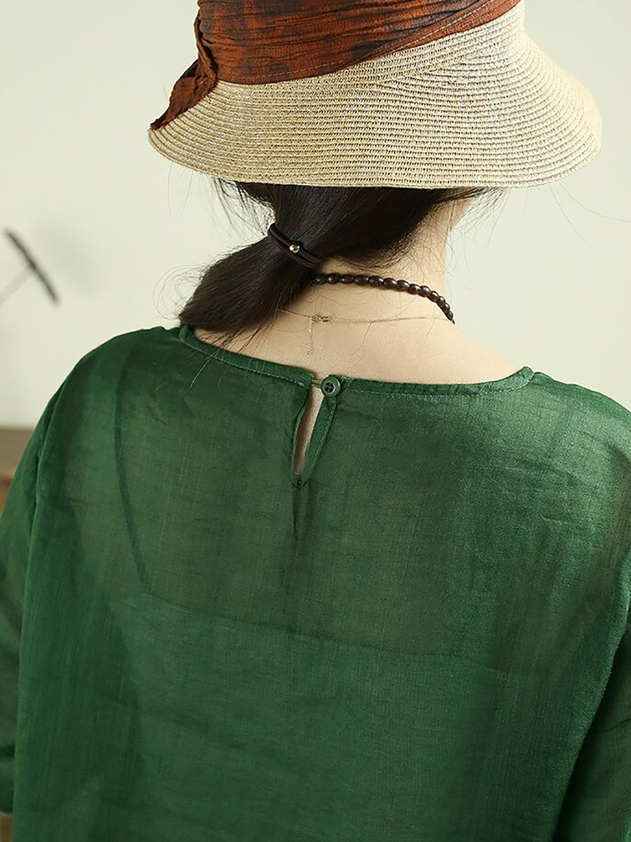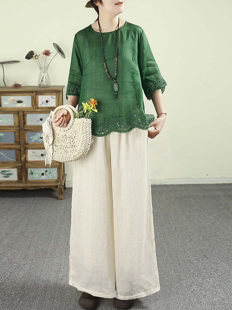 Women Summer Artsy Embroidery 100%Ramie Blouse