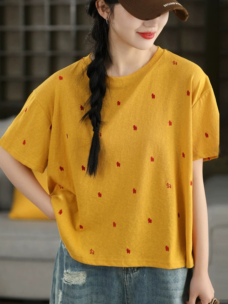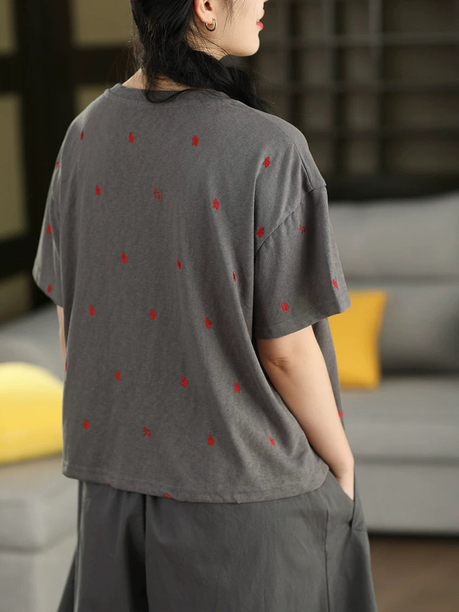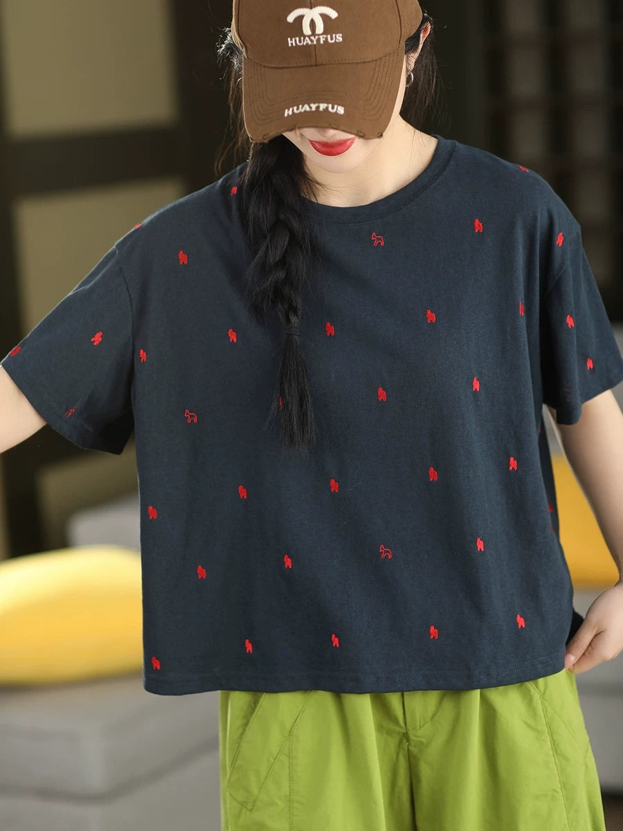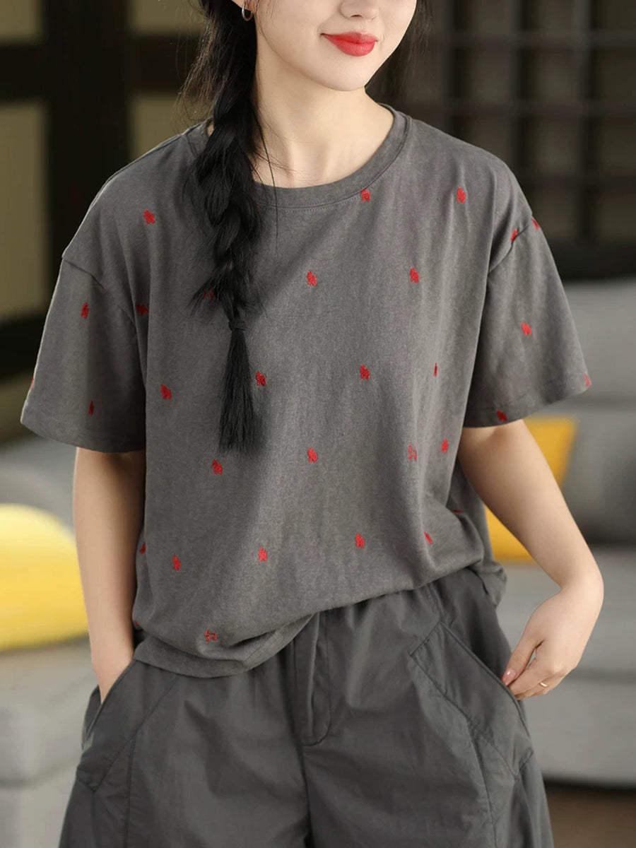 Women Summer Artsy Embroidery Cotton T-Shirt