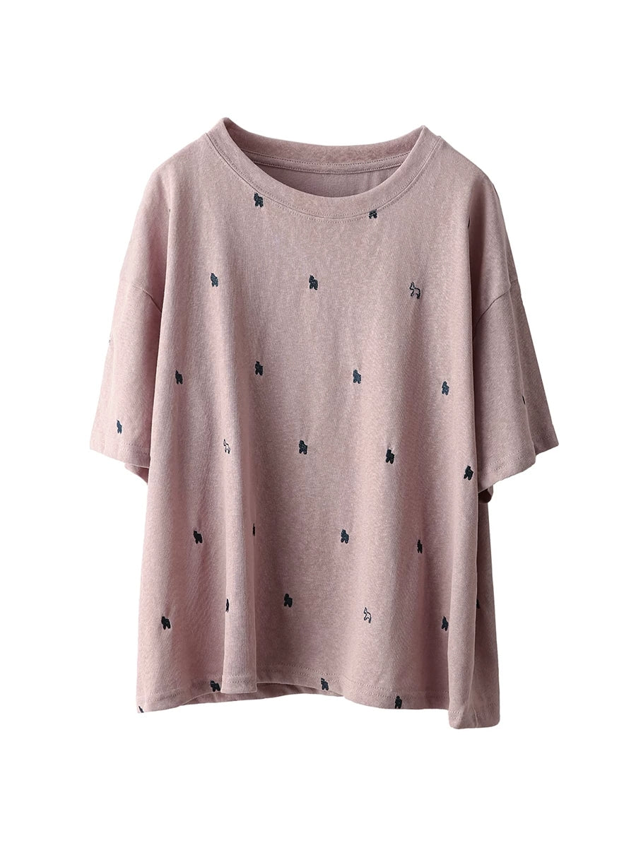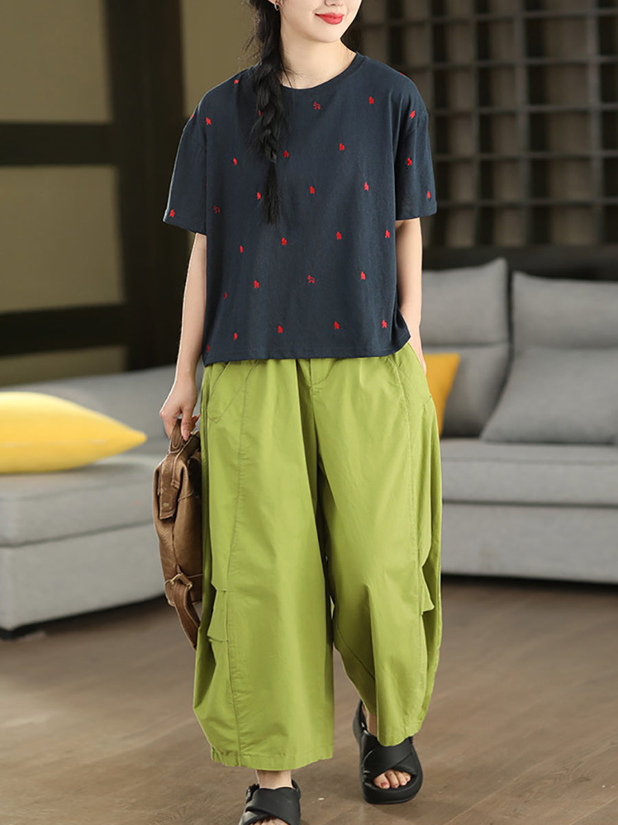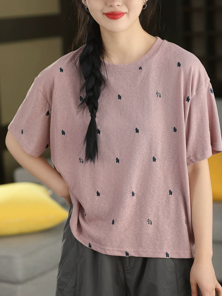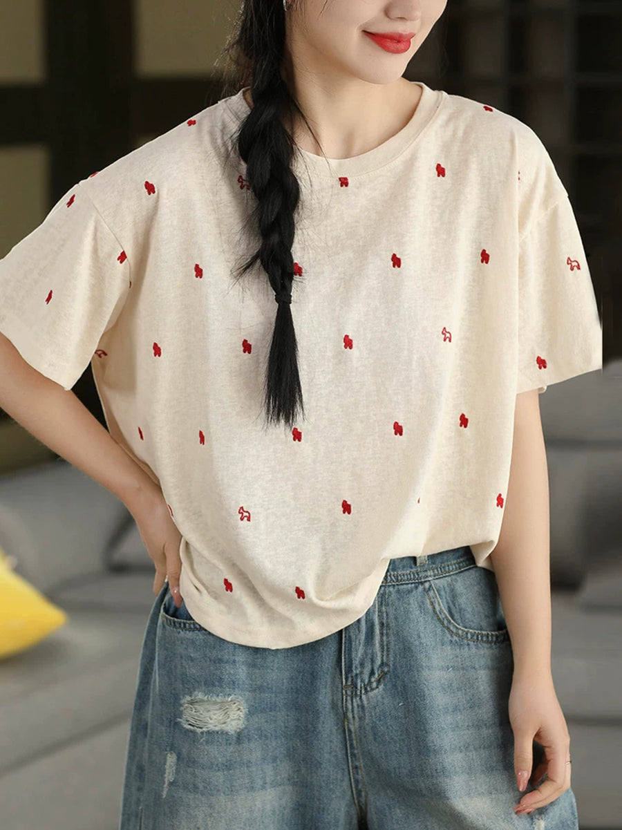 Women Summer Artsy Embroidery Cotton T-Shirt