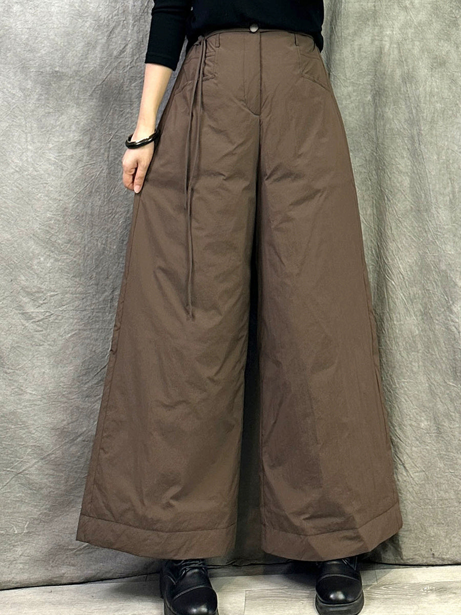 Women Winter Casual Pure Color Down Wide-leg Pants