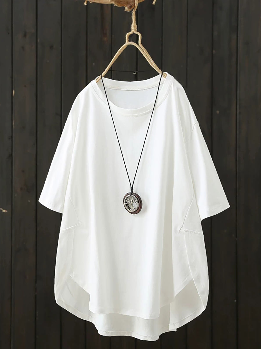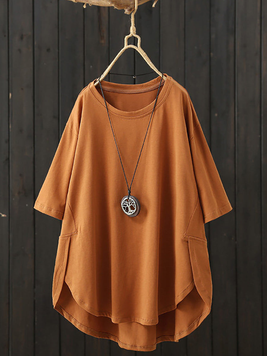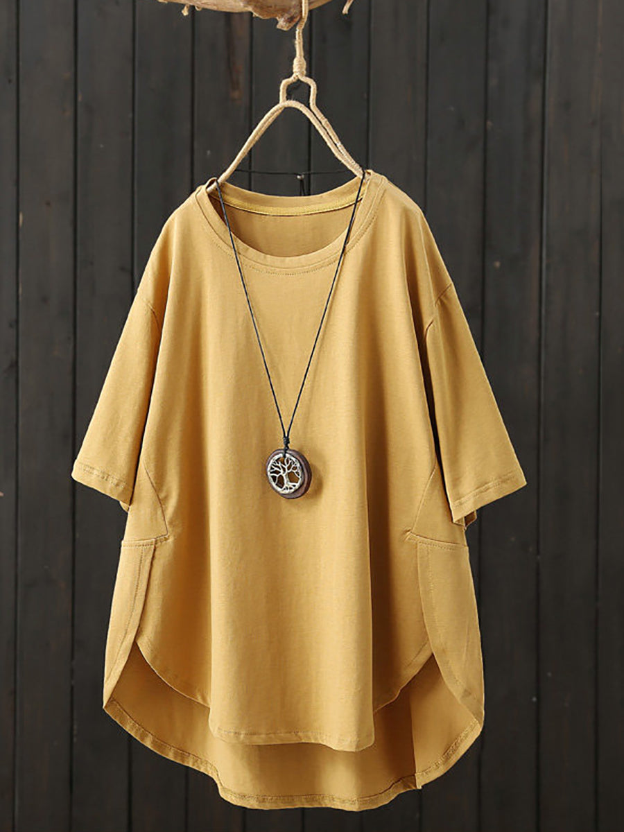 Women Summer Casual Pure Color O-Neck Shirt