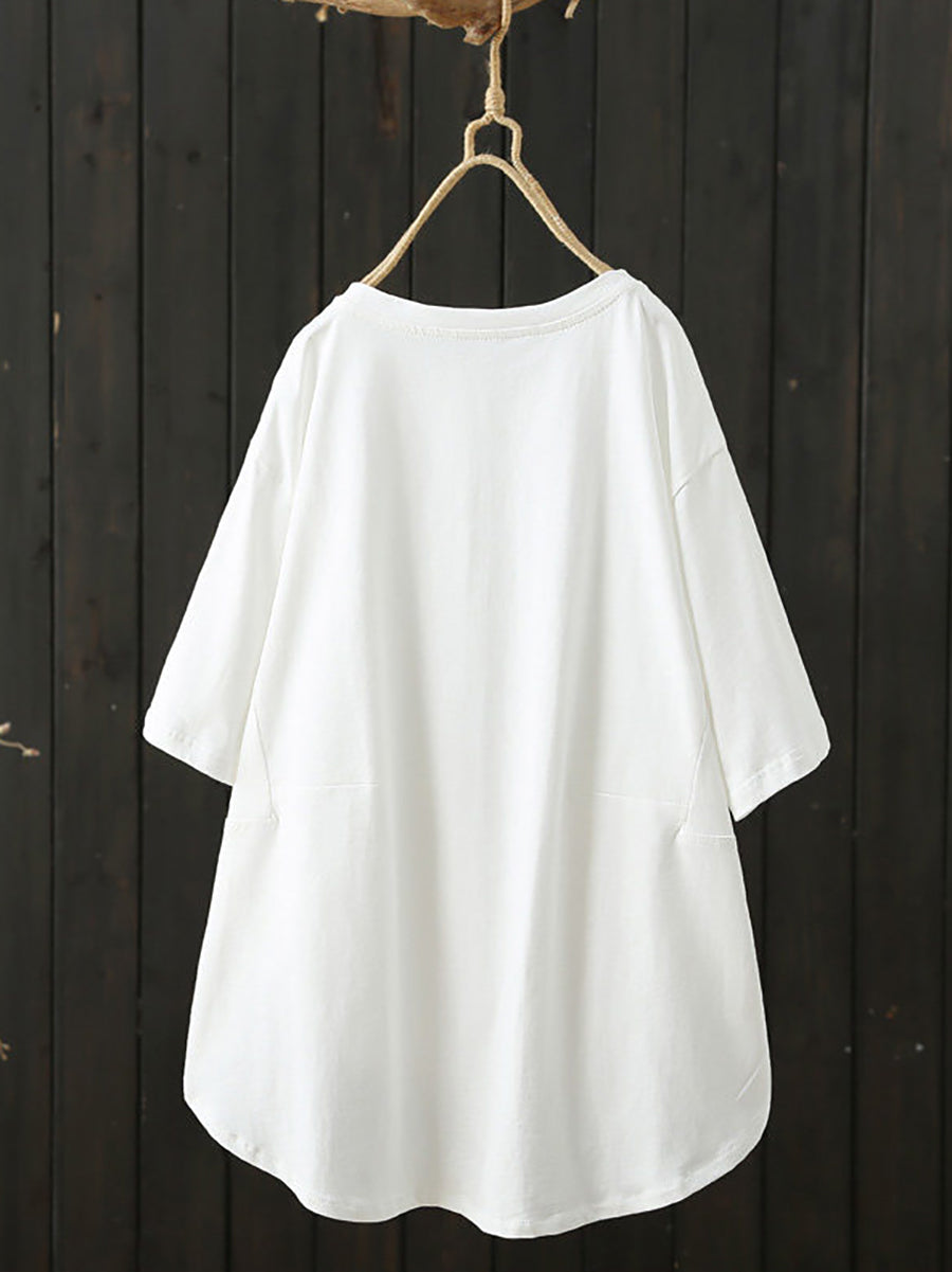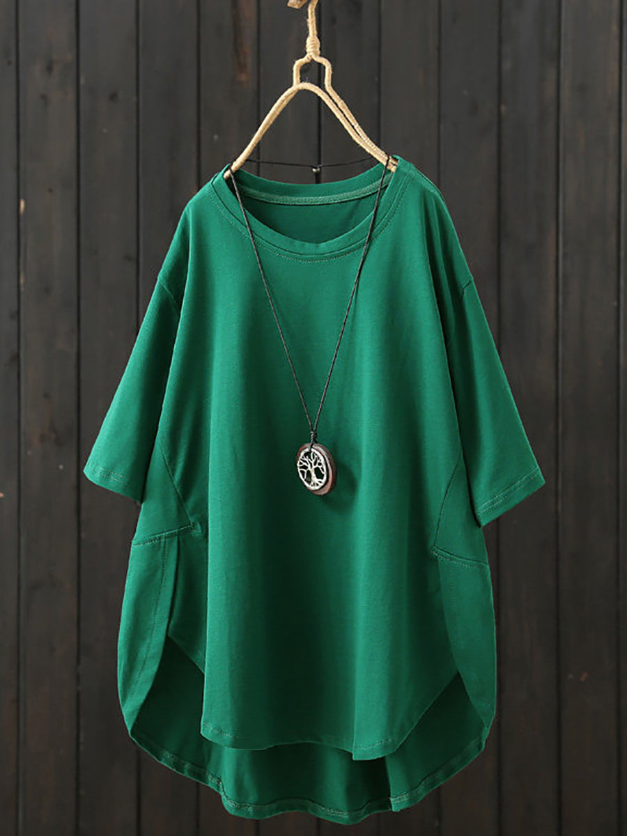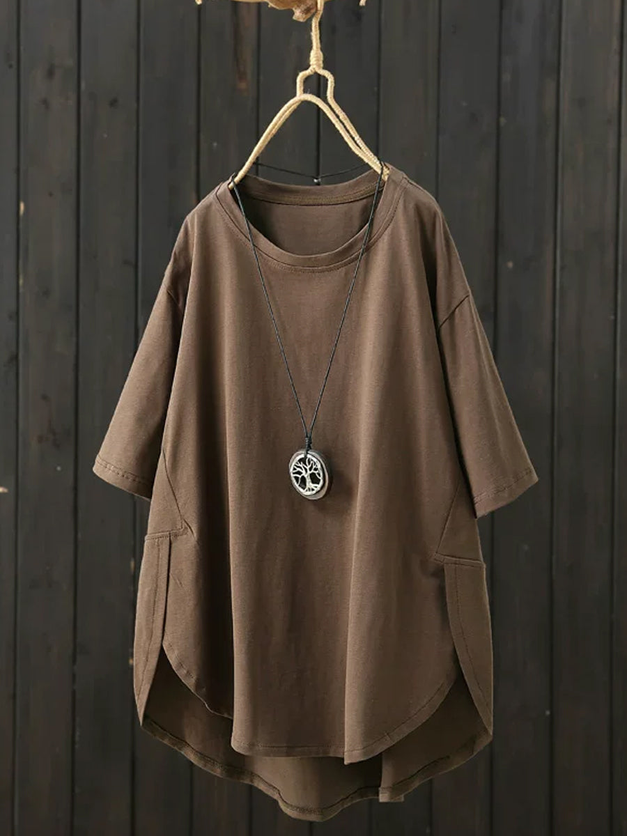 Women Summer Casual Pure Color O-Neck Shirt