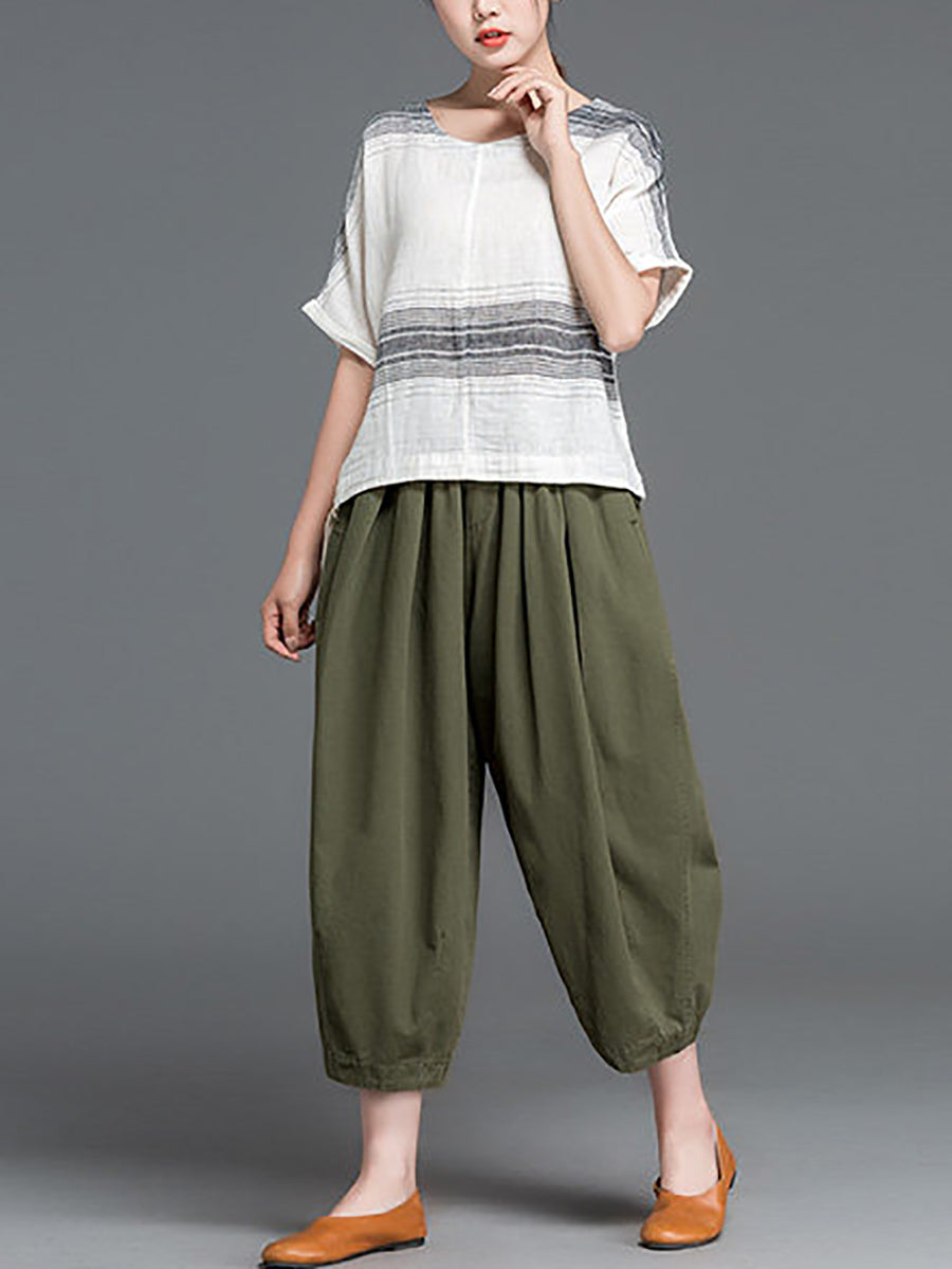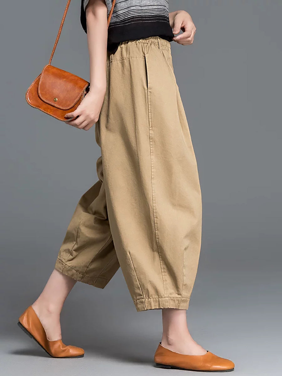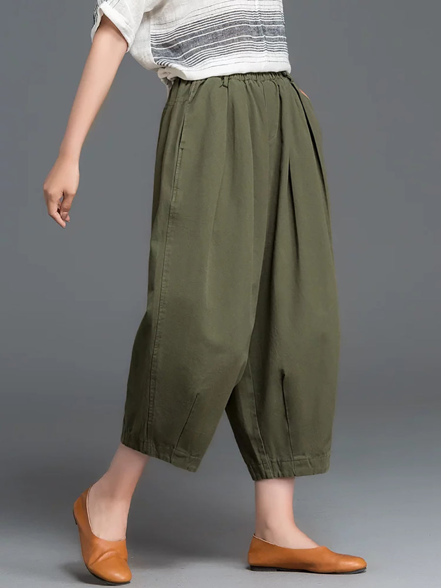 Women Summer Casual Pure Color 100%Cotton Harem Pants