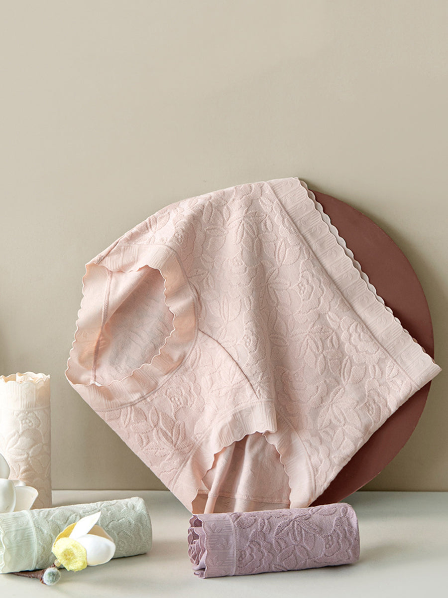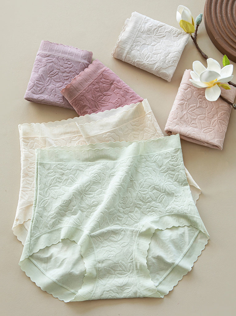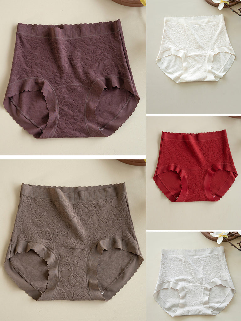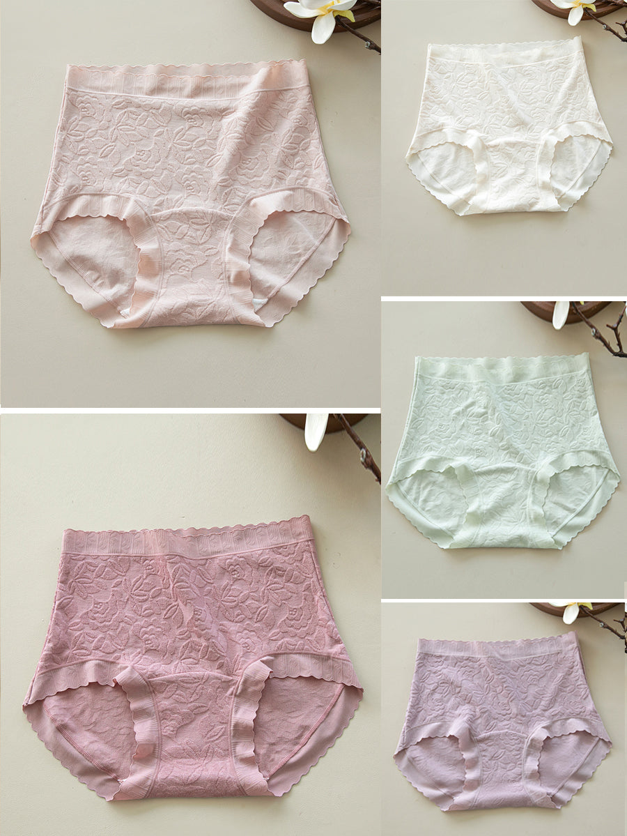 5 Pieces Women Flower Jacquard High Waist Cotton Underwear