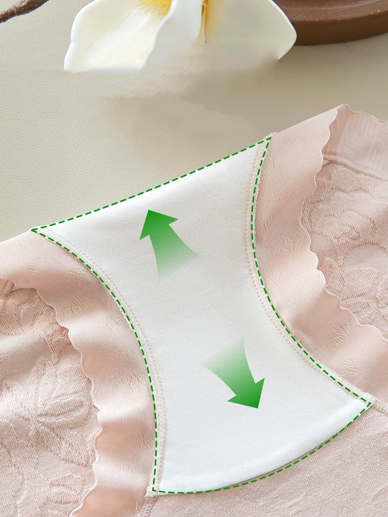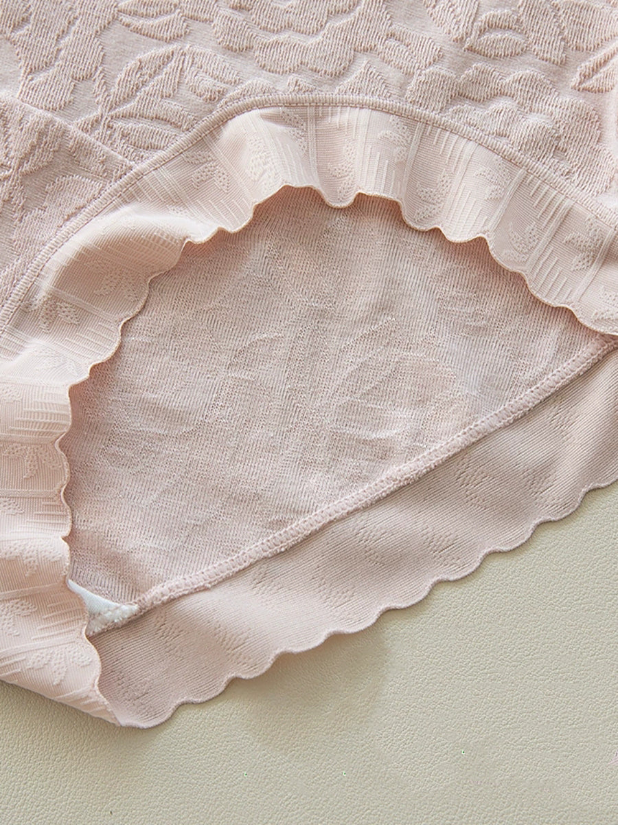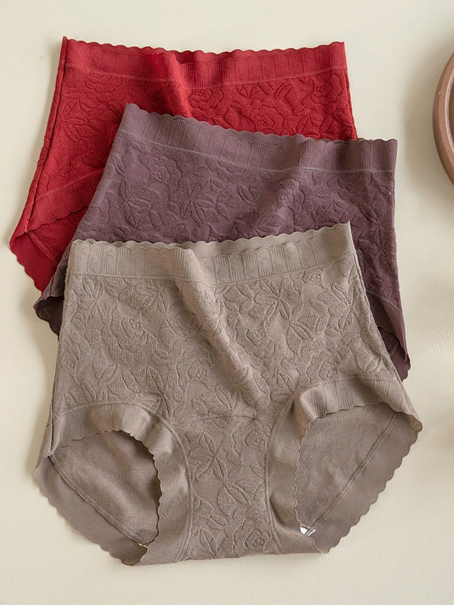 5 Pieces Women Flower Jacquard High Waist Cotton Underwear