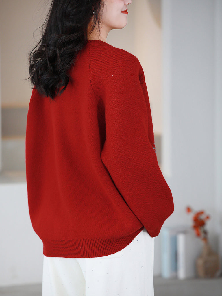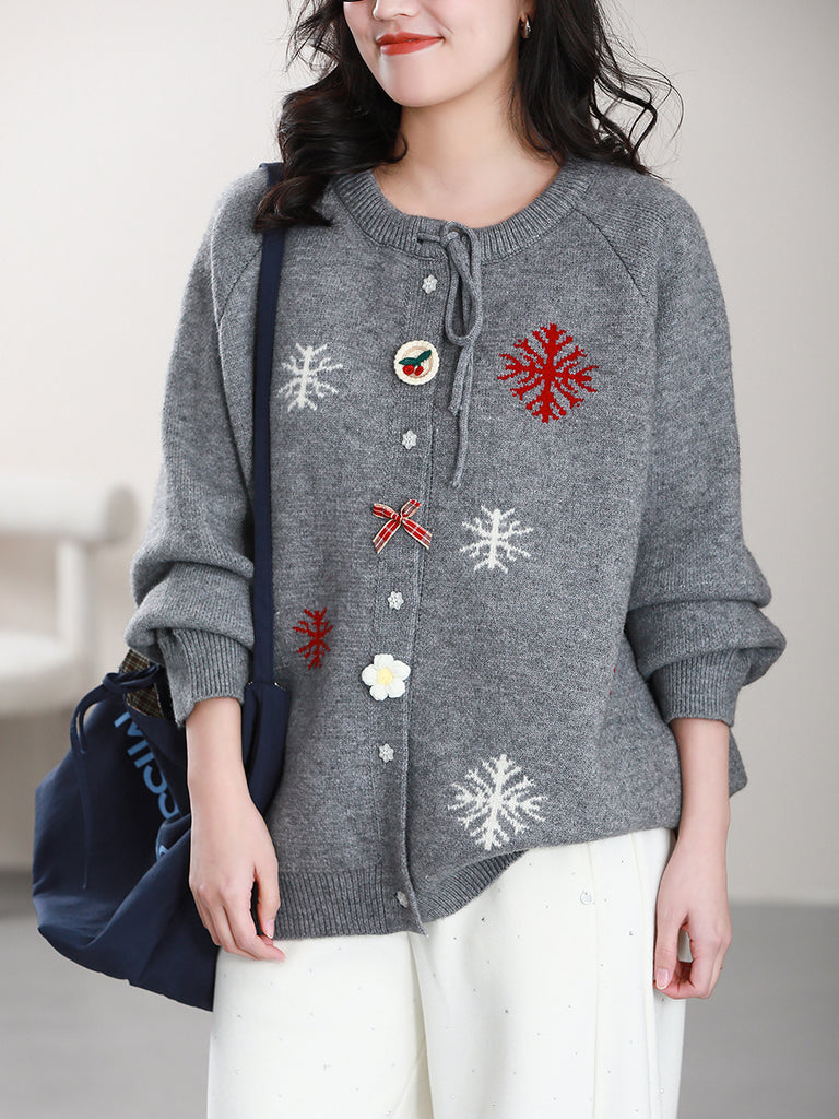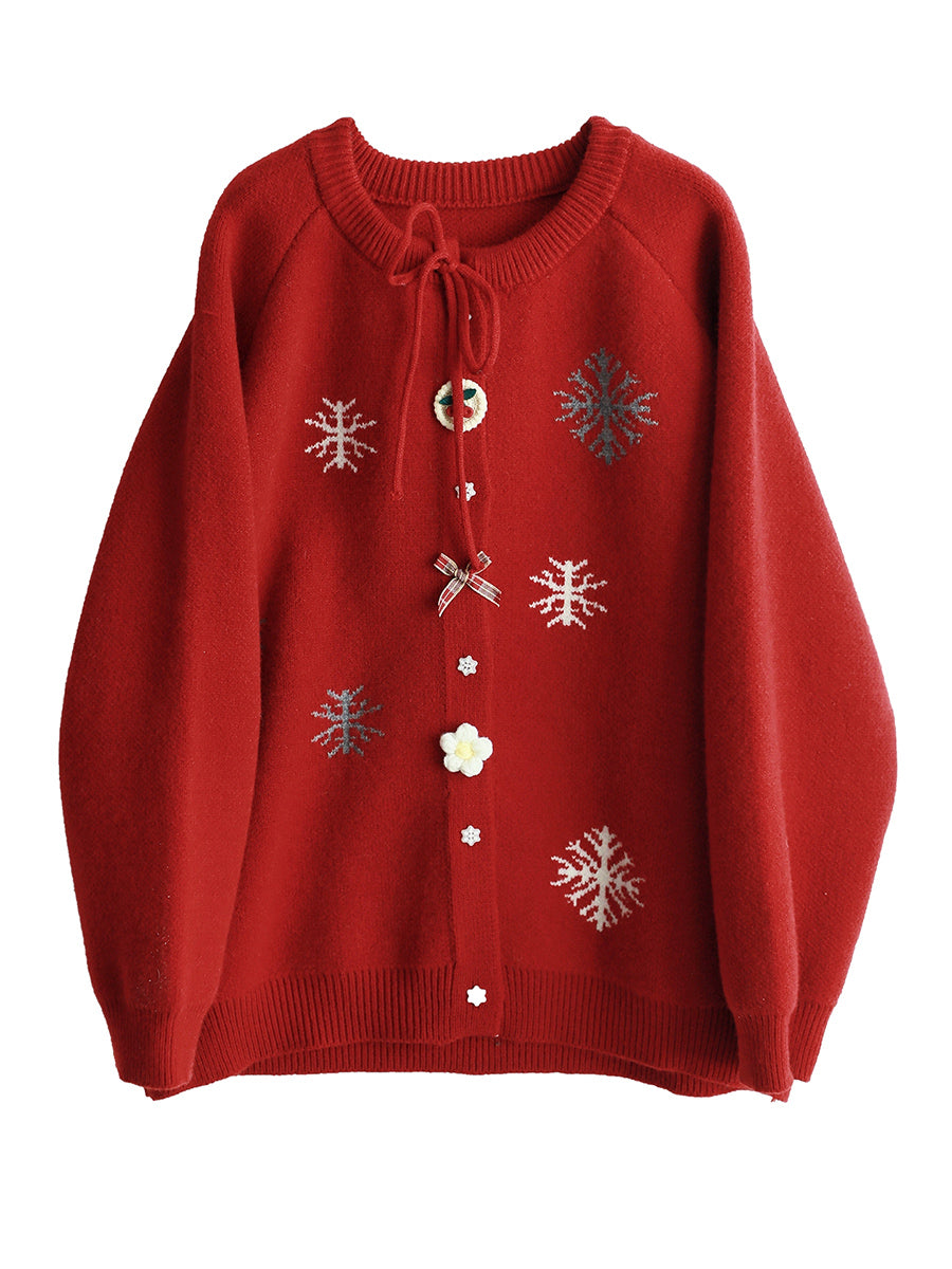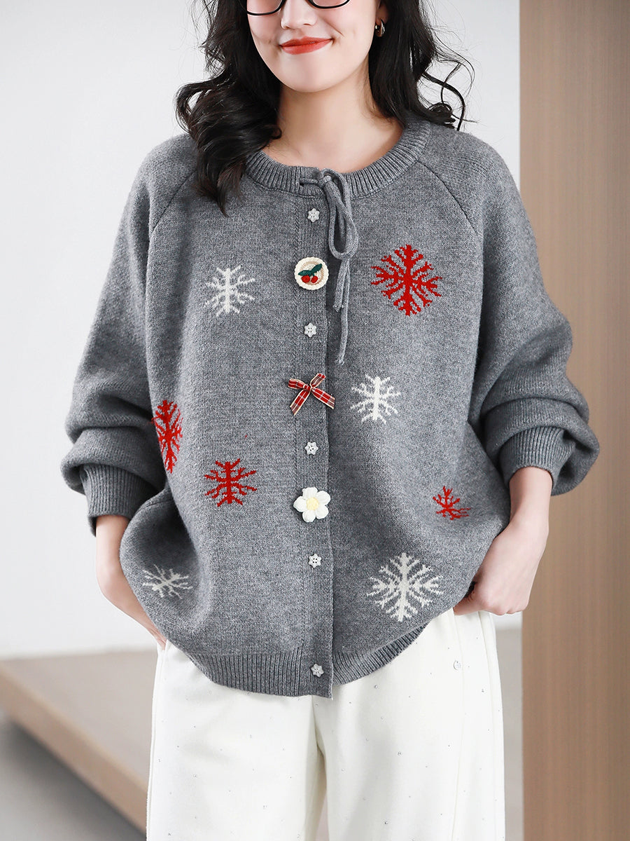 Women Autumn Chirstmas Snowflake O-Neck Sweater