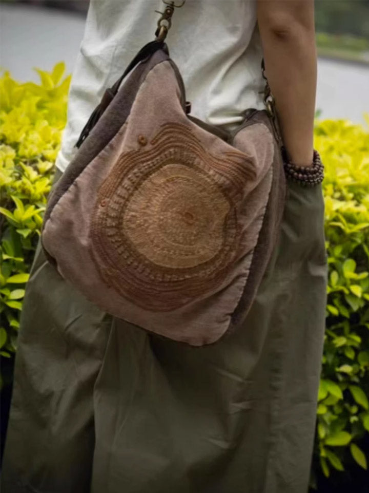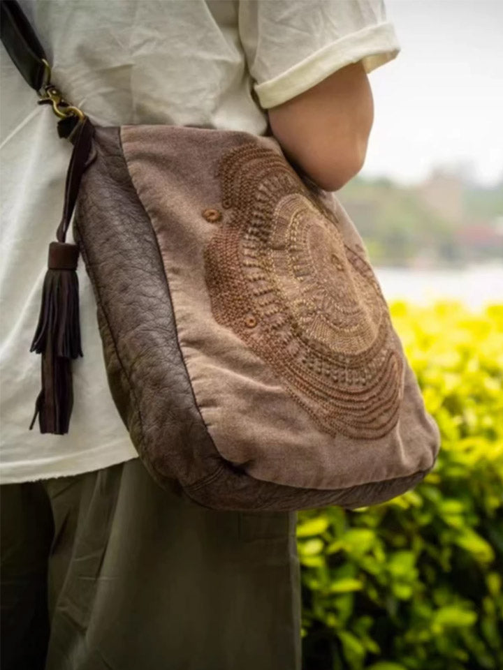 Vintage Artistic Leather Spliced Embroidery Crossbody Bag