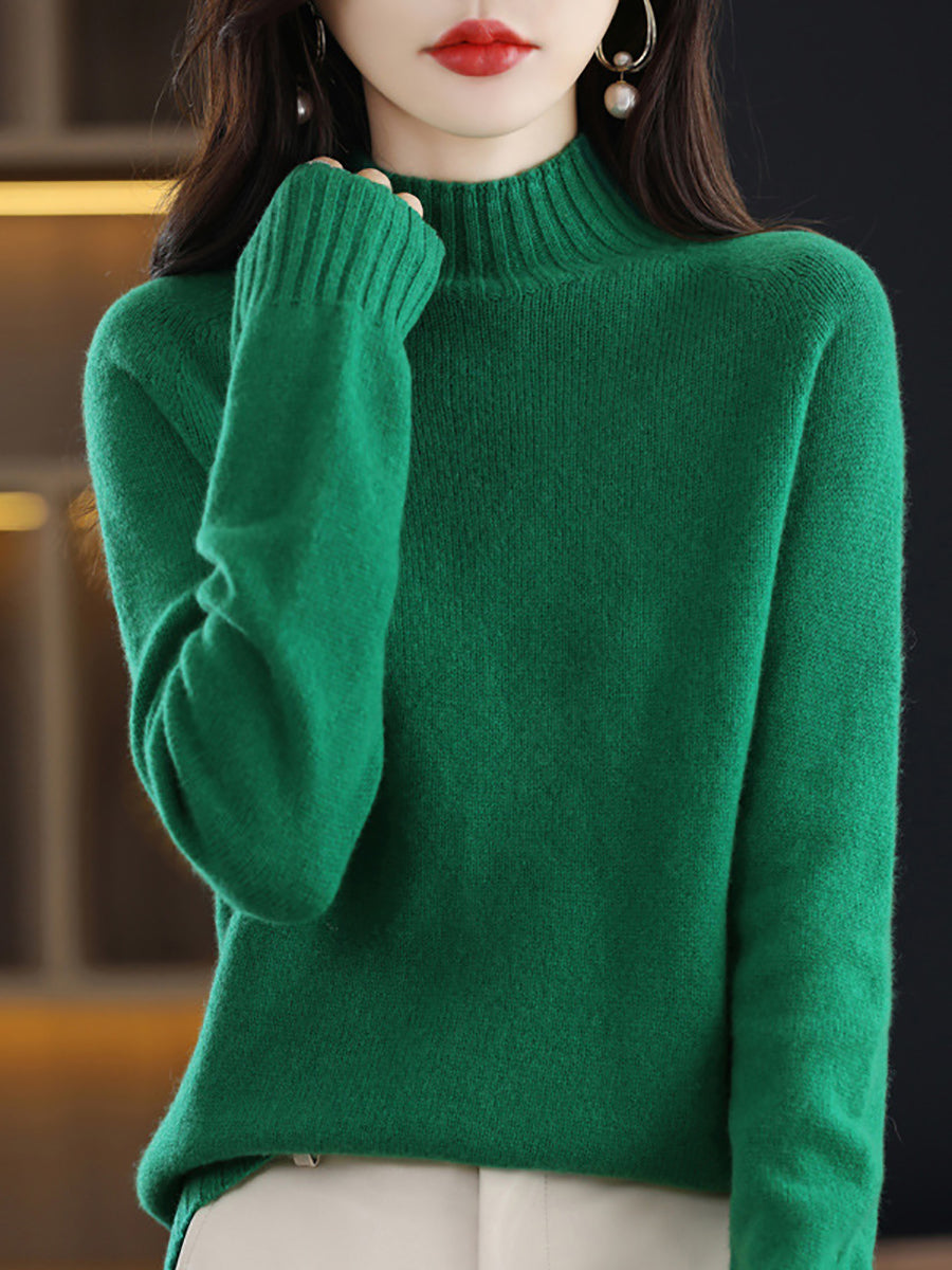 Women Autumn Artsy Pure Color Knitted Turtleneck Sweater