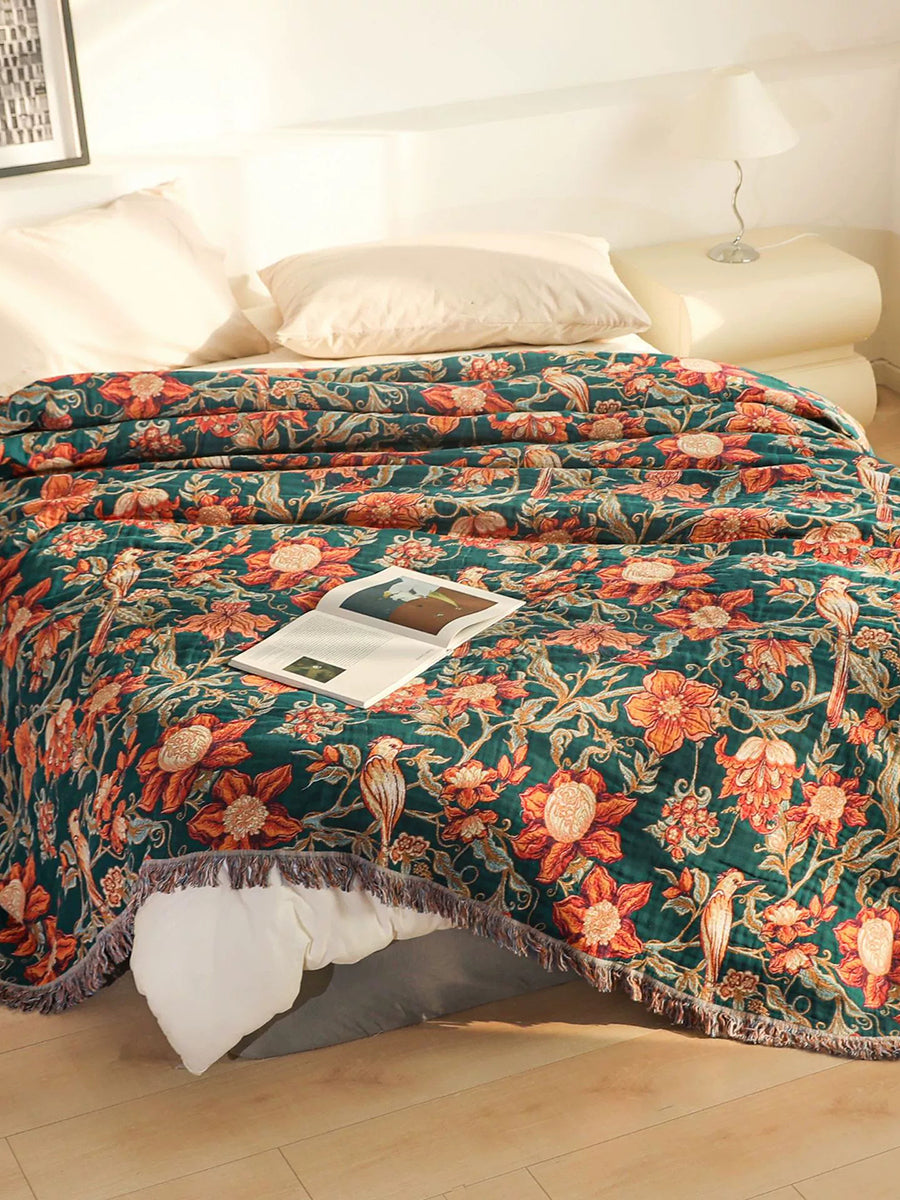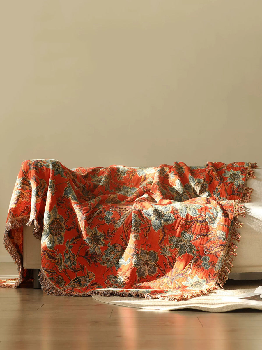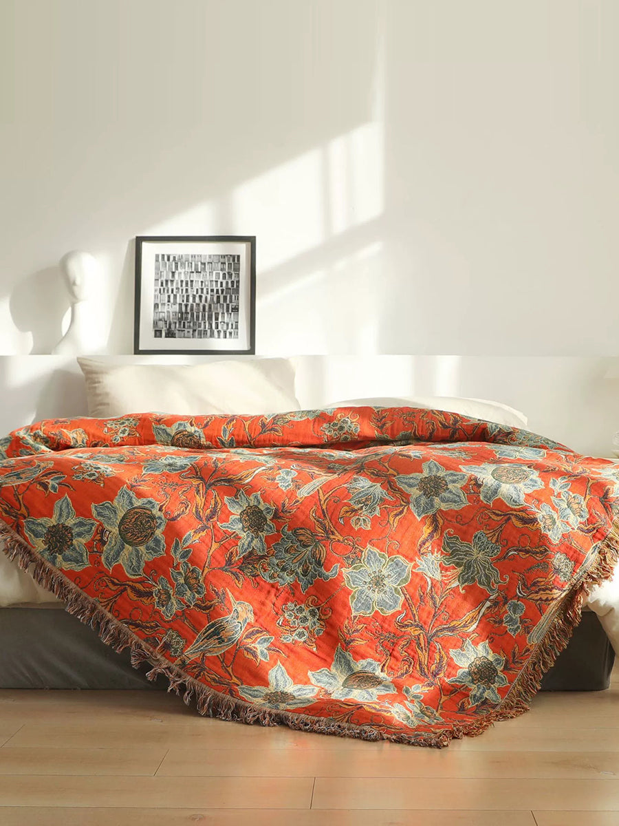 100%Cotton Flower Tassel Bedcover Sofa Blanket