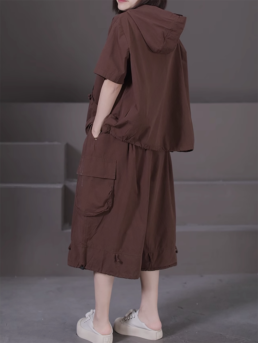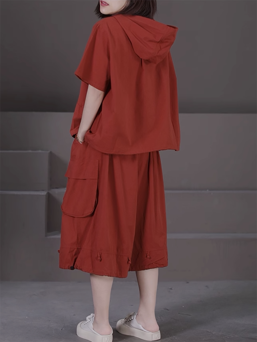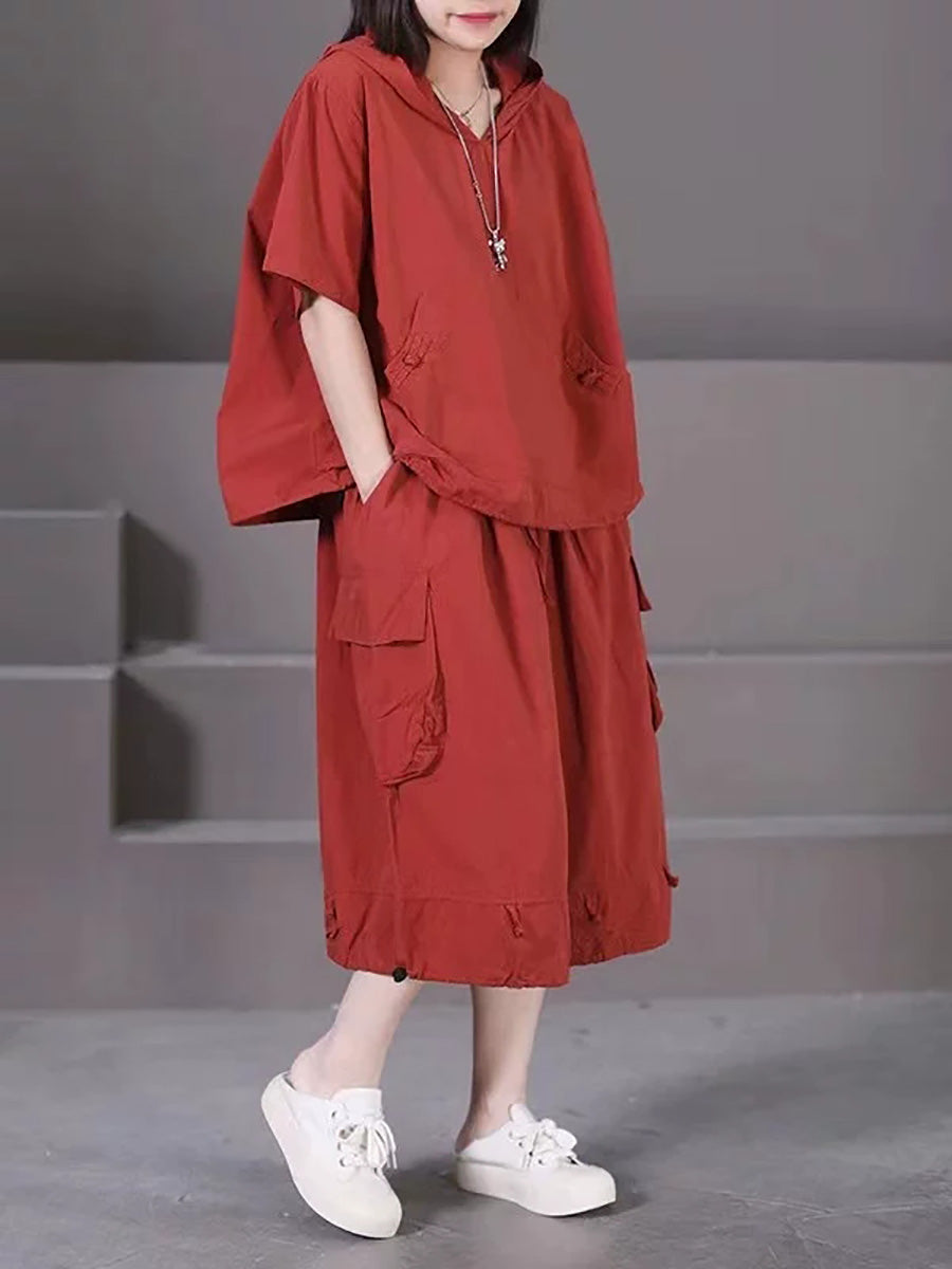 Plus Size Women Summer Casual Pure Color Hooded Suits