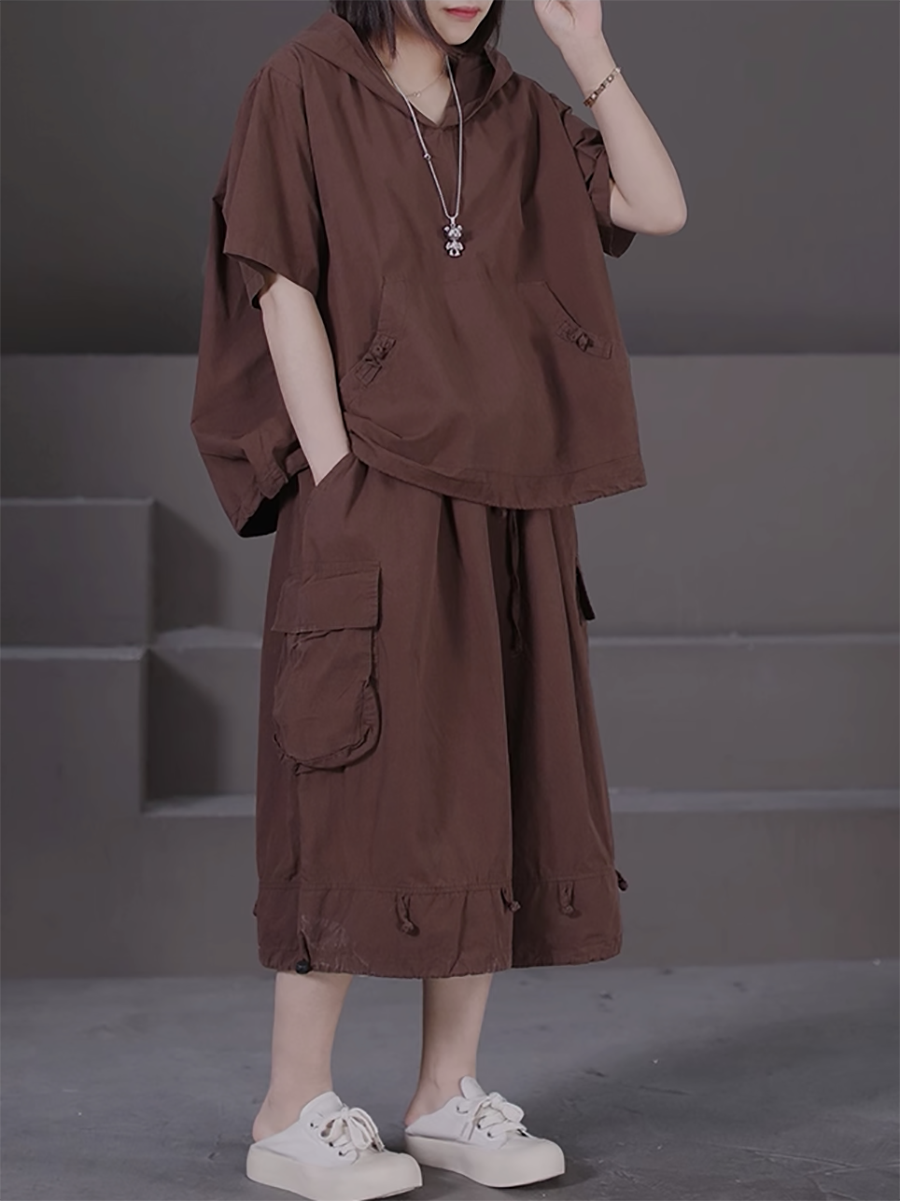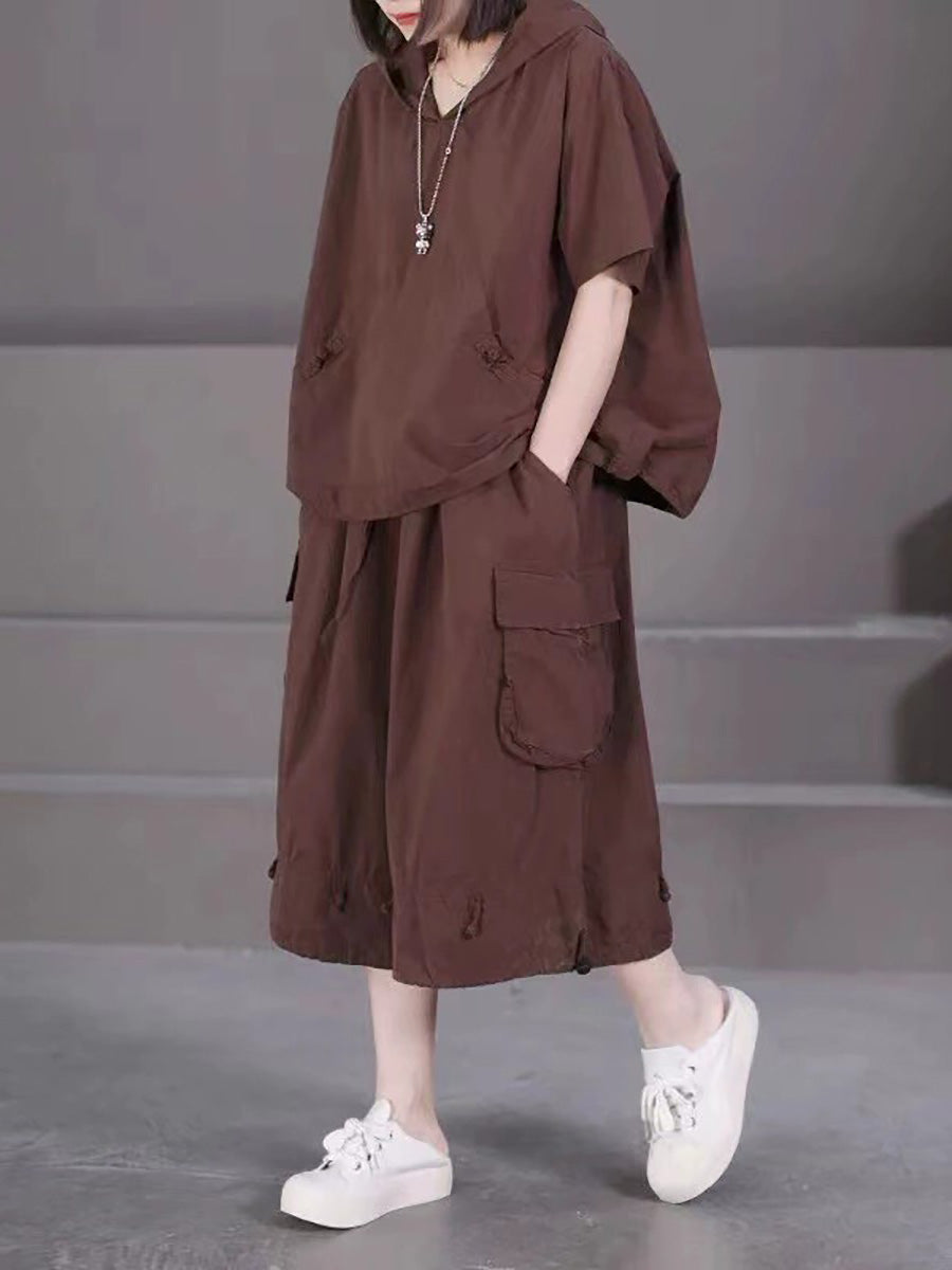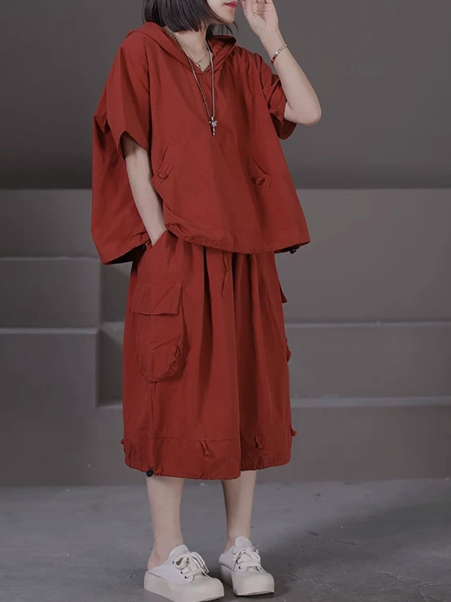 Plus Size Women Summer Casual Pure Color Hooded Suits