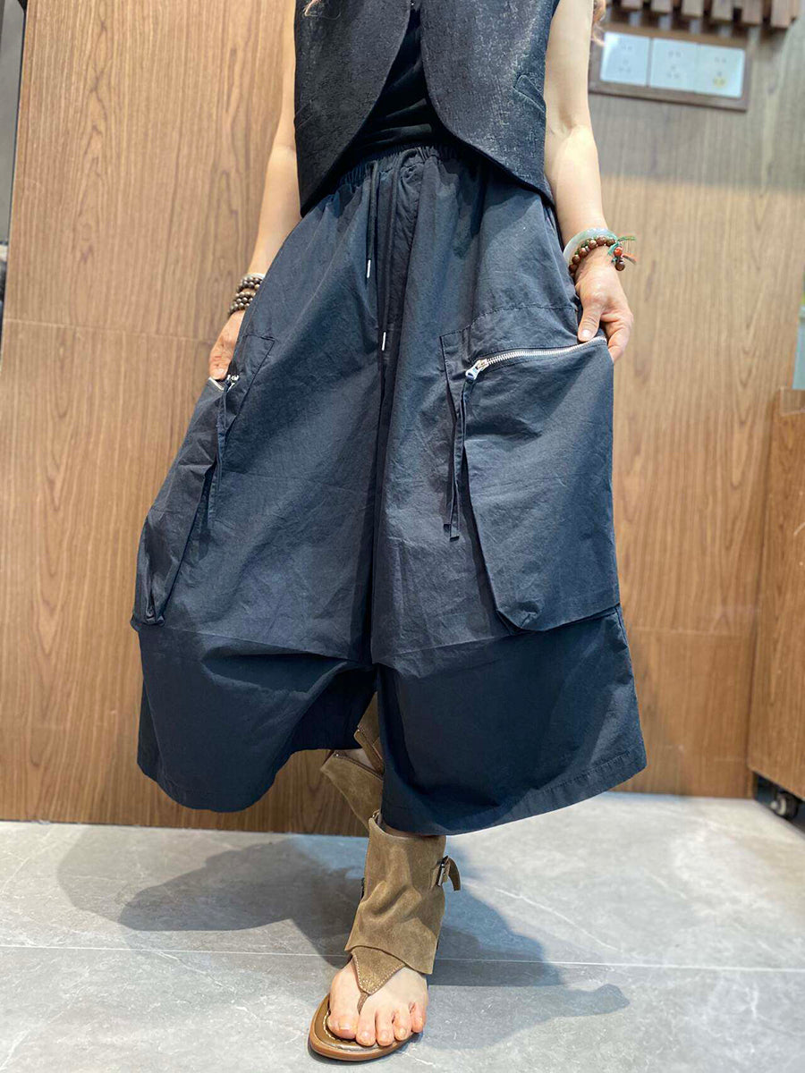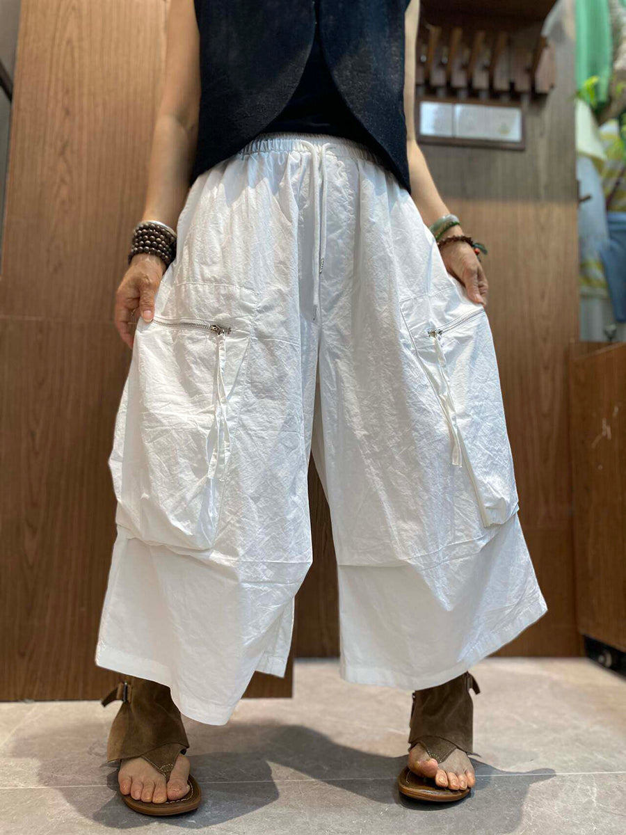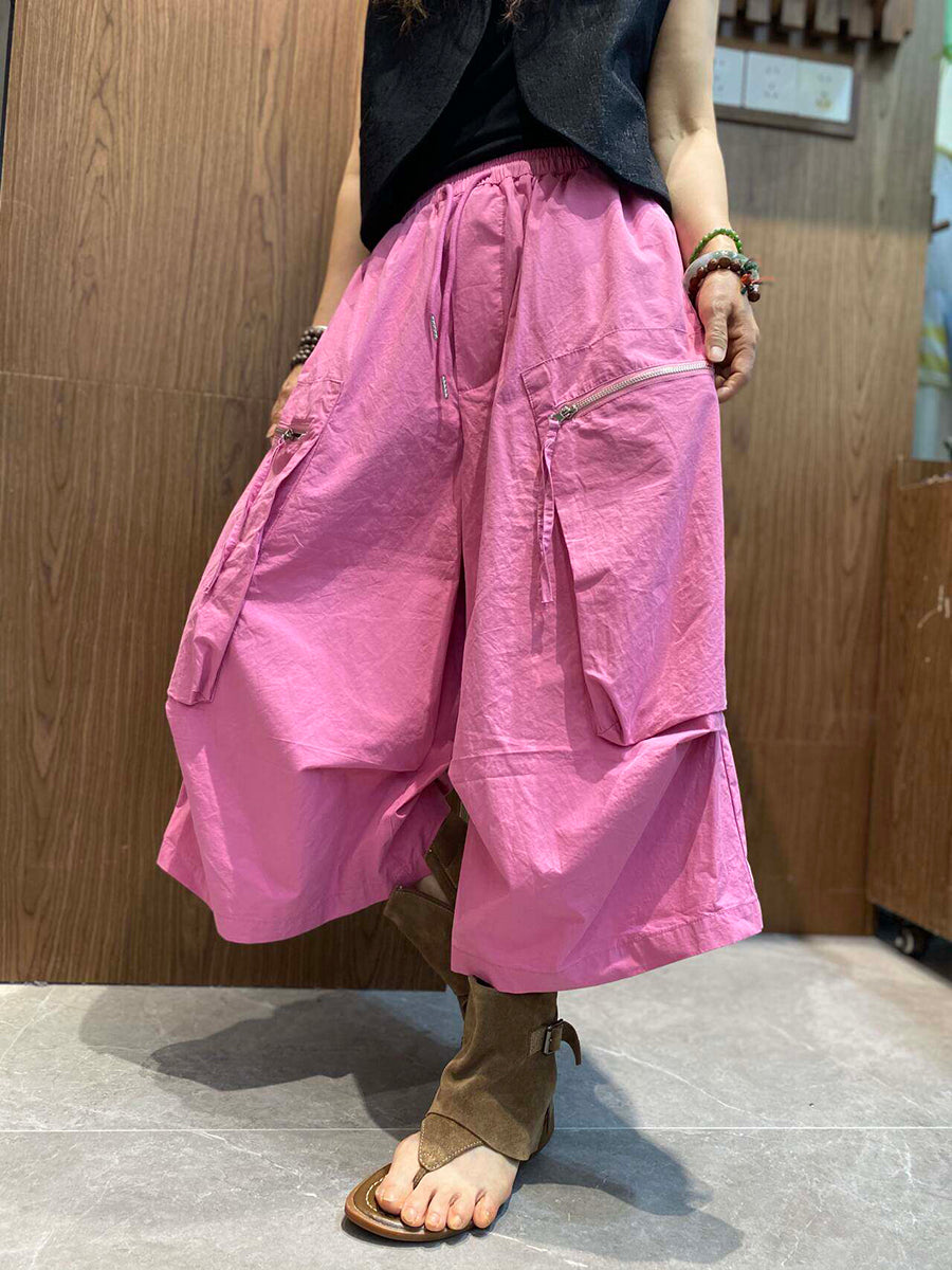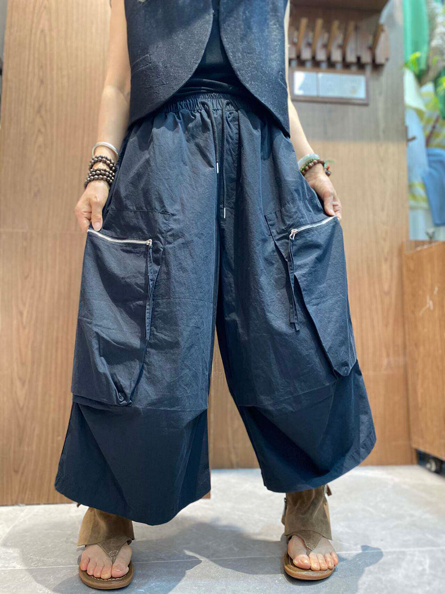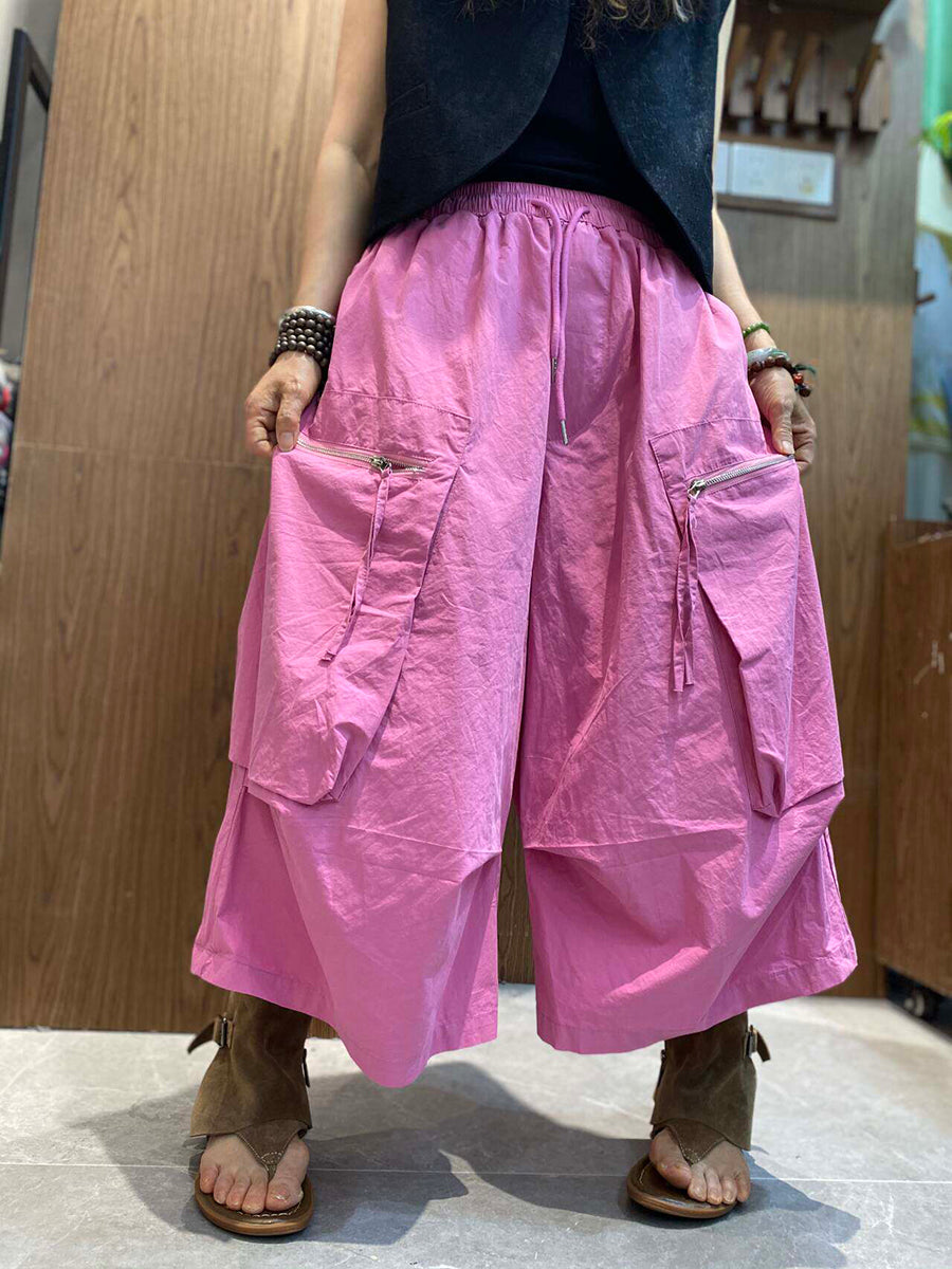 Plus Size Women Summer Casual Pure Color Wide-leg Pants